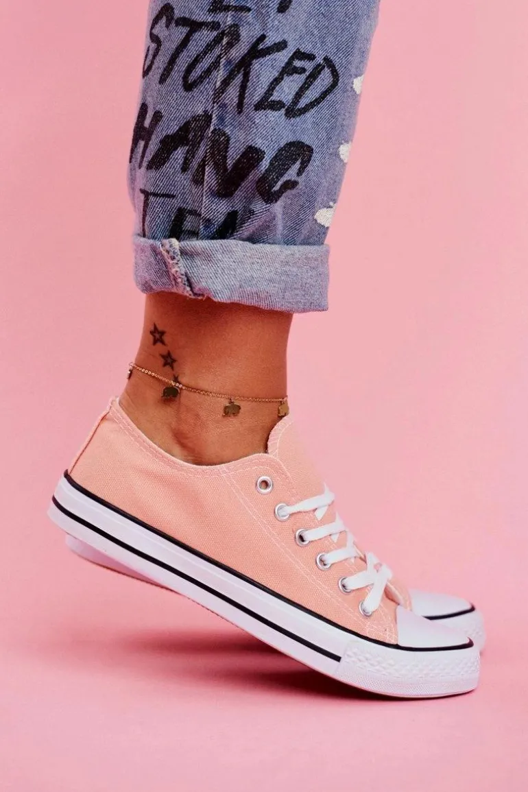 Klasyczne trampki damskie. Buty posiadają gumową podeszwę oraz miękką cholewkę. Ponadczasowy model, dostępny w wielu pięknych kolorach! Przy wyborze rozmiaru prosimy sugerować się tabelą rozmiarów.