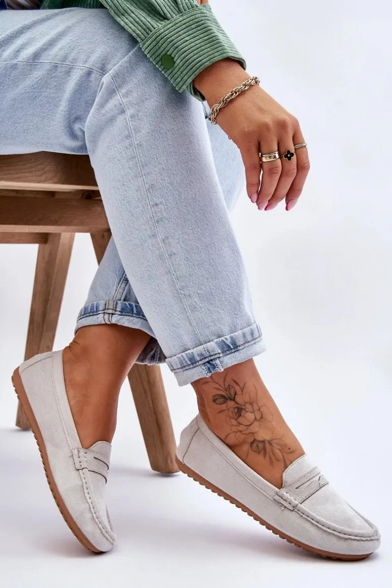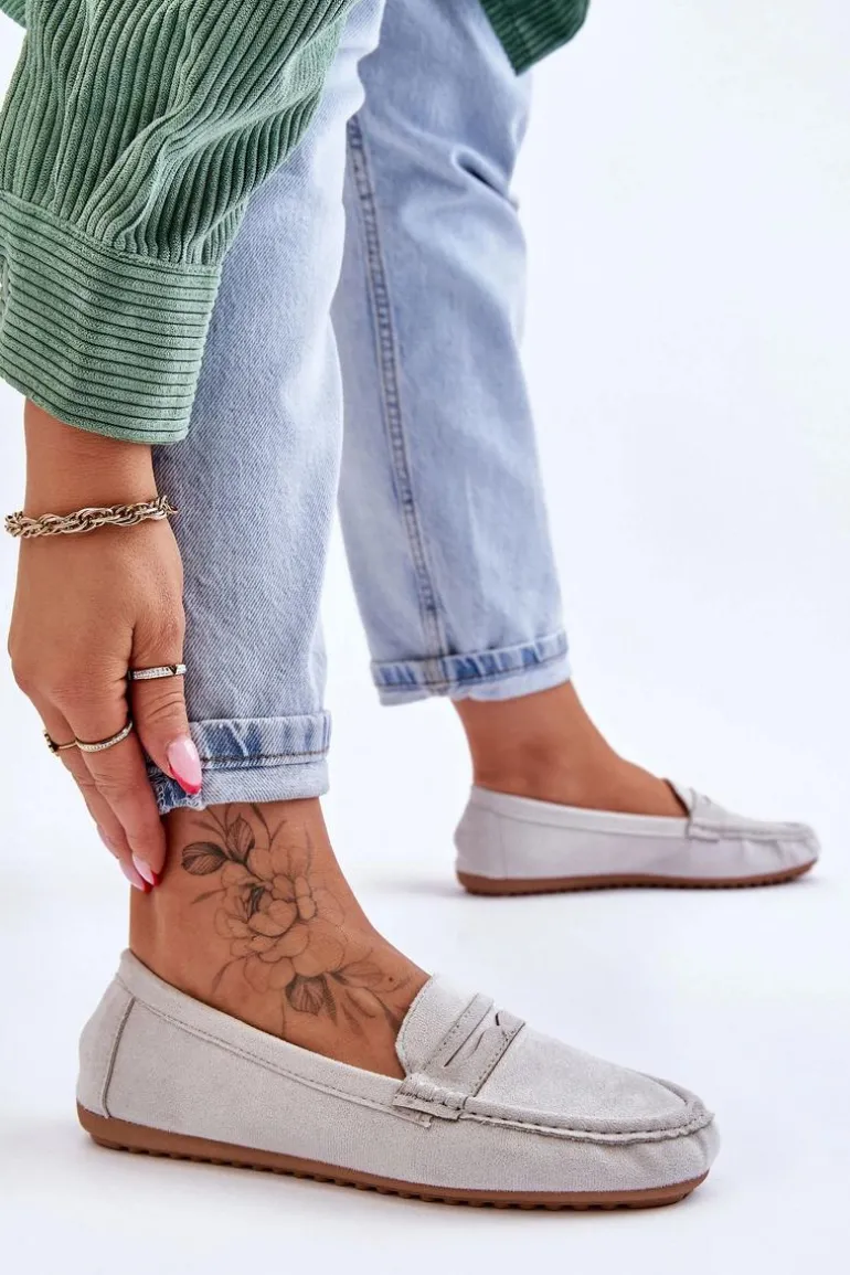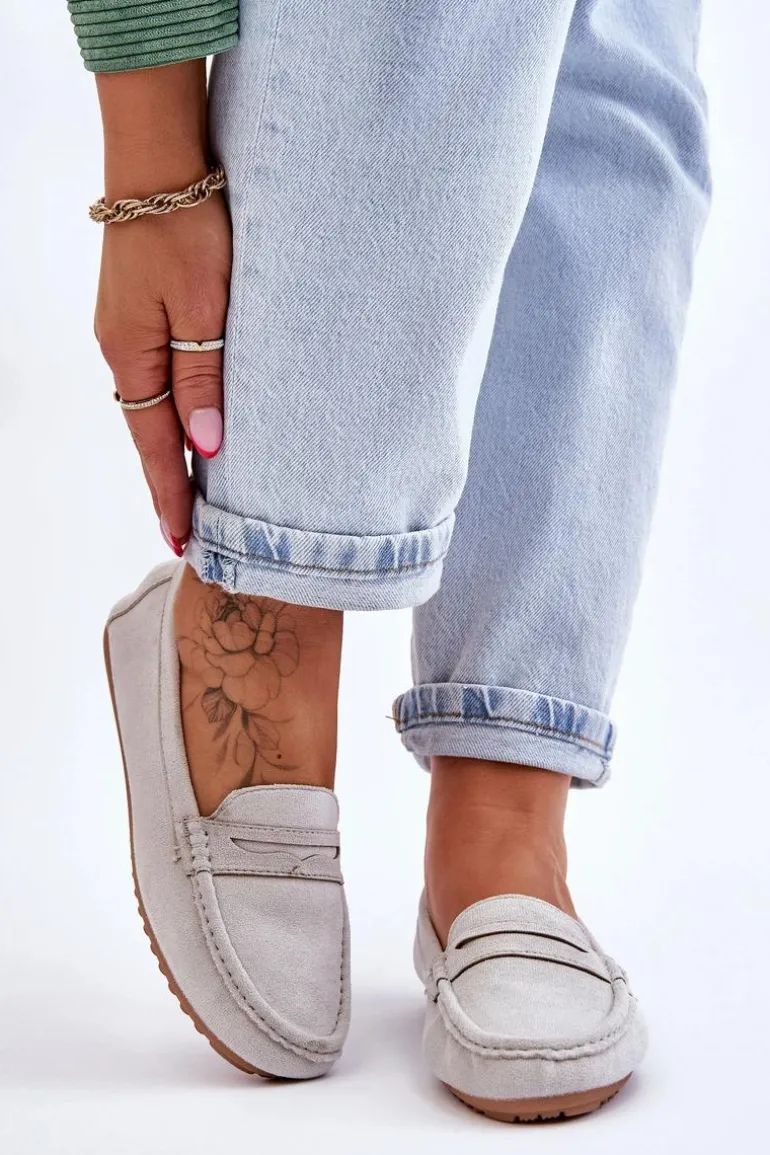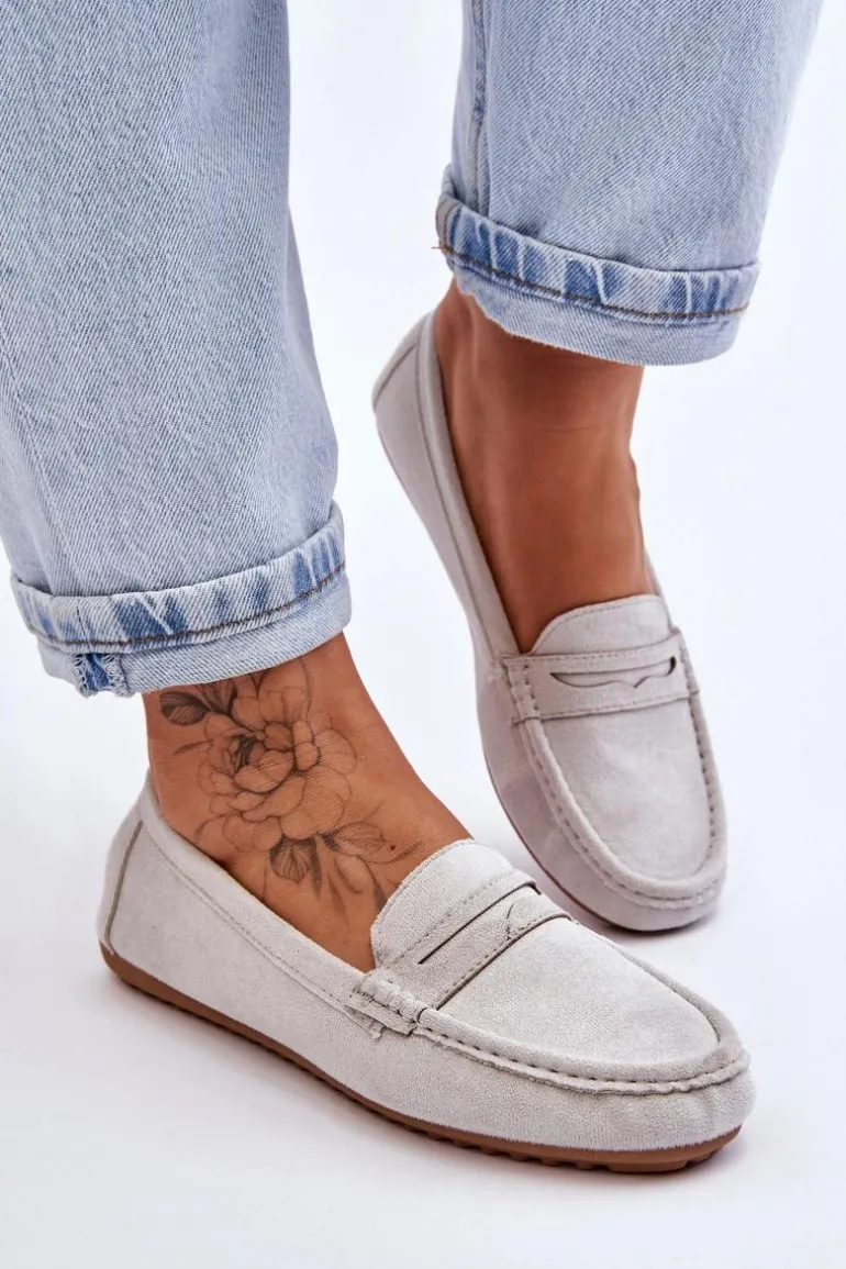 Damskie Klasyczne Zamszowe Mokasyny Szare Ivana