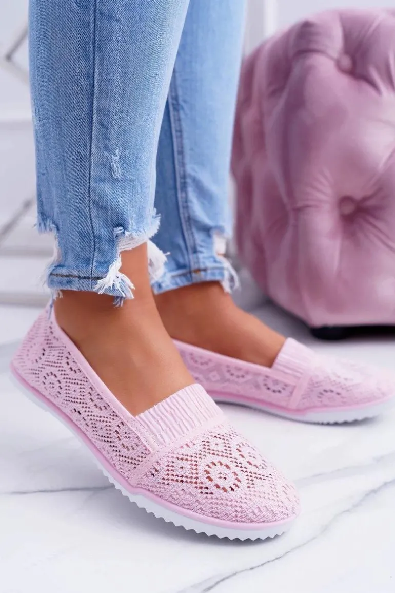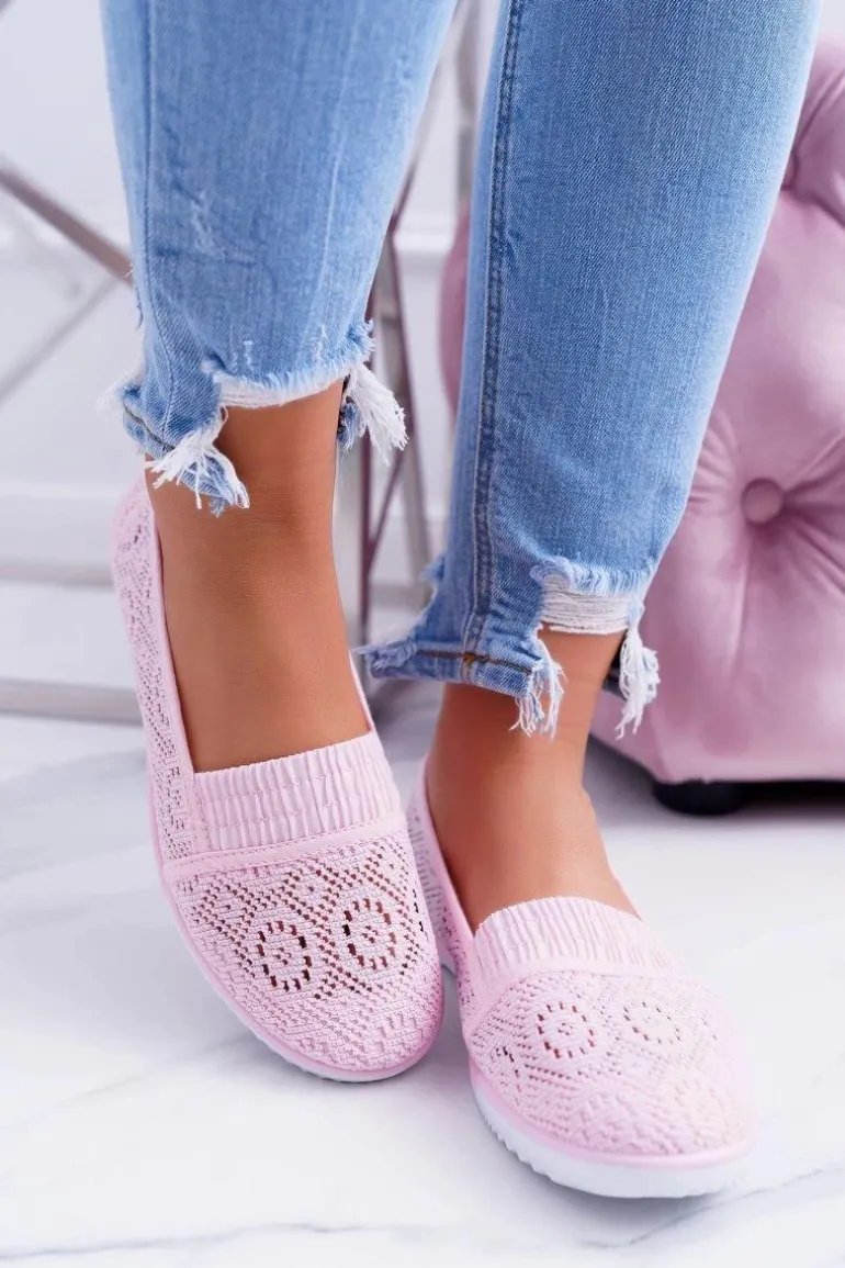Damskie Koronkowe Balerinki Pudrowy Róż Sensitive
