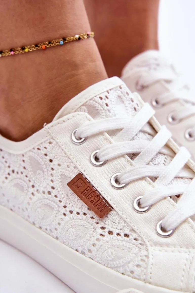 Damskie Koronkowe Tenisówki BIG STAR W274925 Białe