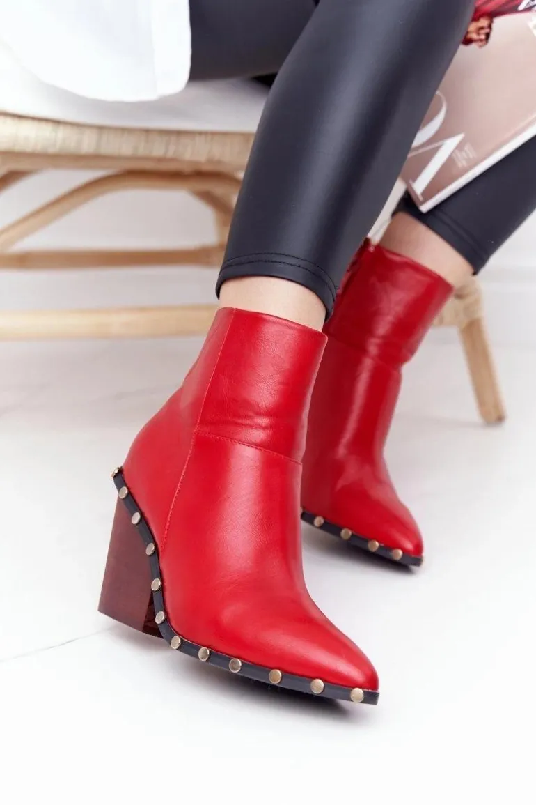 Damskie Kowbojskie Botki Na Obcasie Lu Boo Czerwone
