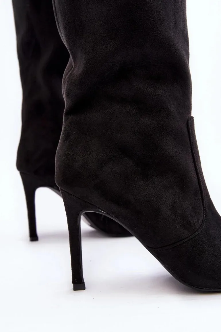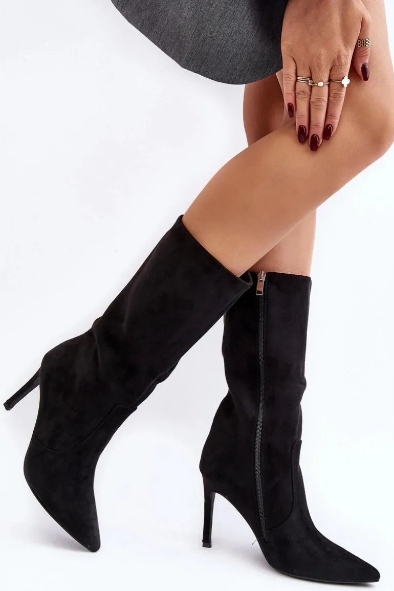 Damskie Kozaki Do Połowy Łydki Na Szpilce Czarne Odetteia