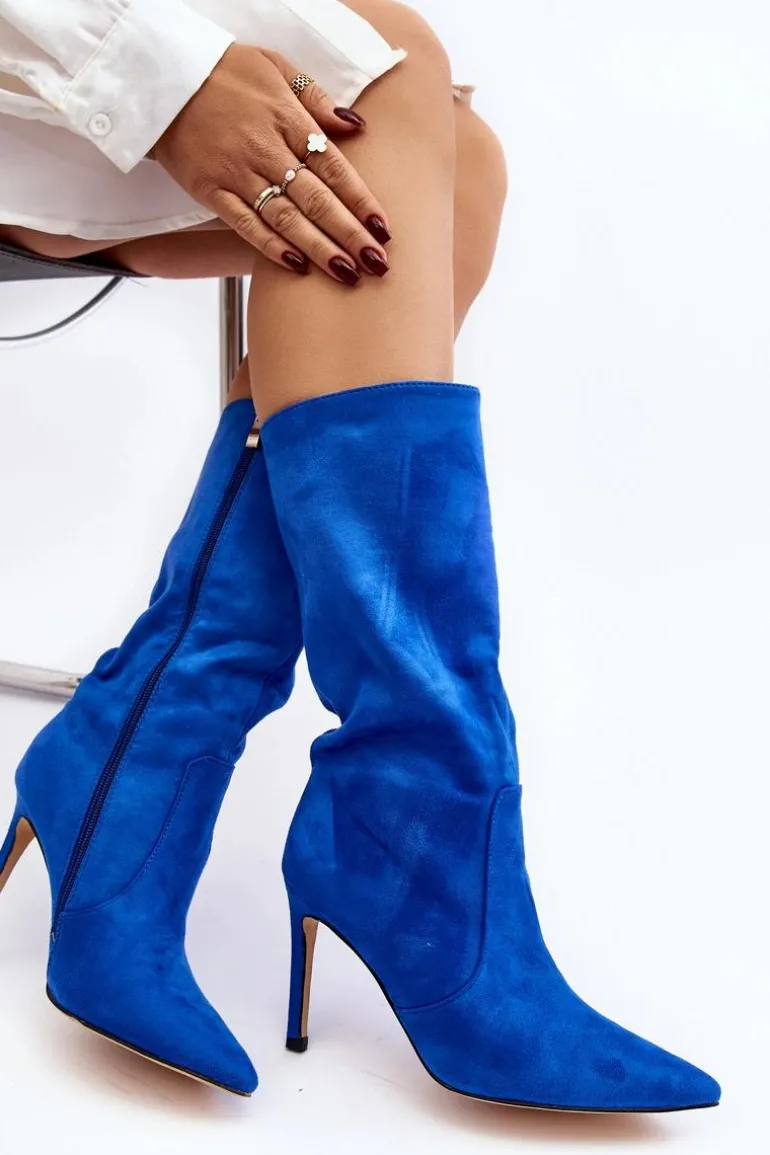 Kozaki damskie wykonane z eko zamszu. Osadzone na zgrabnej szpilce, co dodaje im kobiecego uroku, a jednocześnie gwarantuje elegancję. Ocieplenie w postaci koca obuwniczego zapewnia ciepło i komfort w chłodniejsze dni. Delikatnie szpiczaste noski optycznie wysmuklają nogi, dodając subtelnego wdzięku. Suwak na całej długości cholewki ułatwia zarówno zakładanie, jak i zdejmowanie butów. Ten wyjątkowy model zasługuje na swoje miejsce w Twojej garderobie! Przy wyborze rozmiaru prosimy sugerować się tabelą rozmiarów.