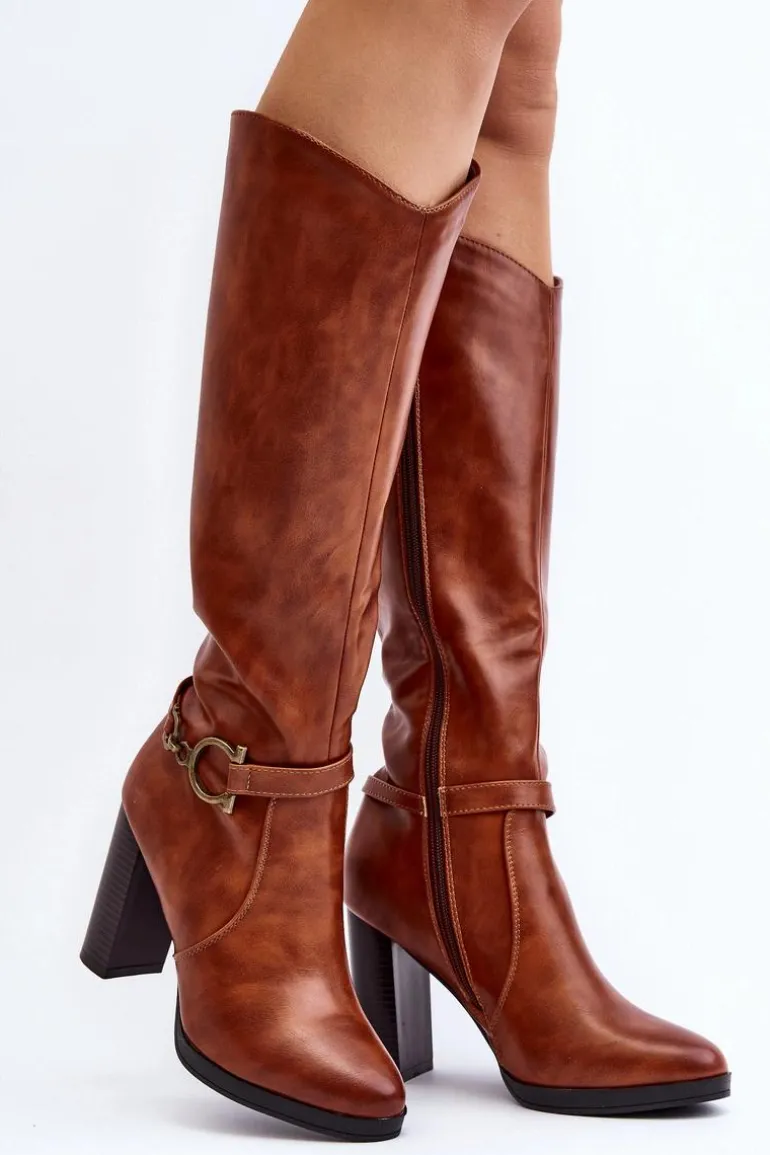 Eleganckie kozaki damskie z cholewką przed kolano. Wykonane z eko skóry. Zapinane na suwak. Środek ocieplony kocem obuwniczym. Osadzone na obcasie w postaci stabilnego słupka. Na cholewce cienki pasek z ozdobą. Noski w migdał. Wykorzystasz je w wielu stylizacjach! Przy wyborze rozmiaru prosimy sugerować się tabelą rozmiarów.
