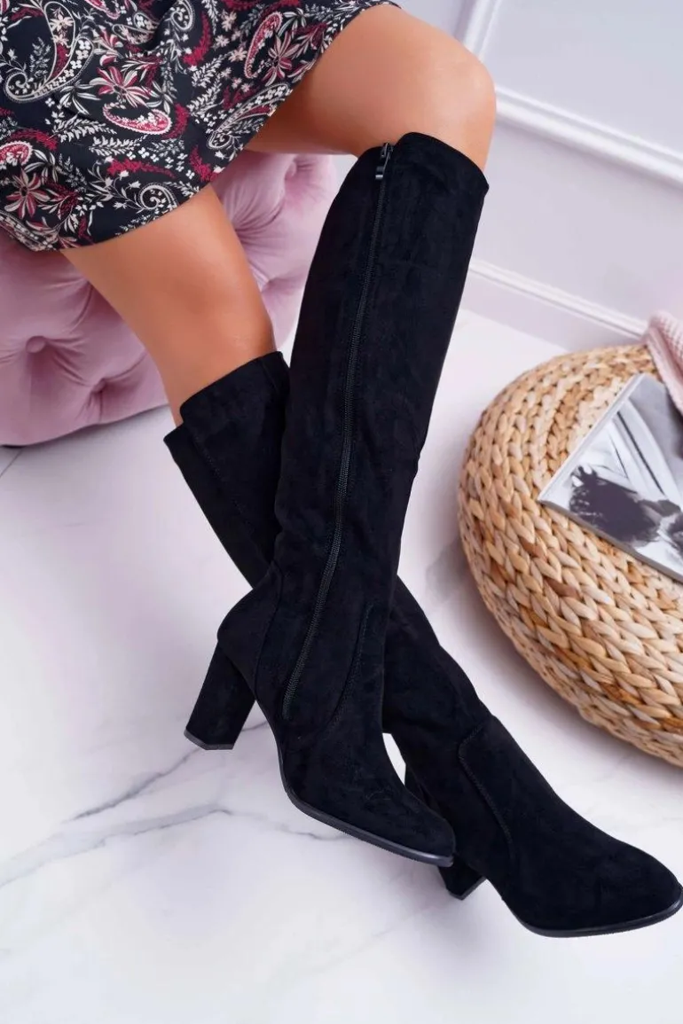 Damskie Kozaki Sergio Leone Zamszowe Czarne KZ275