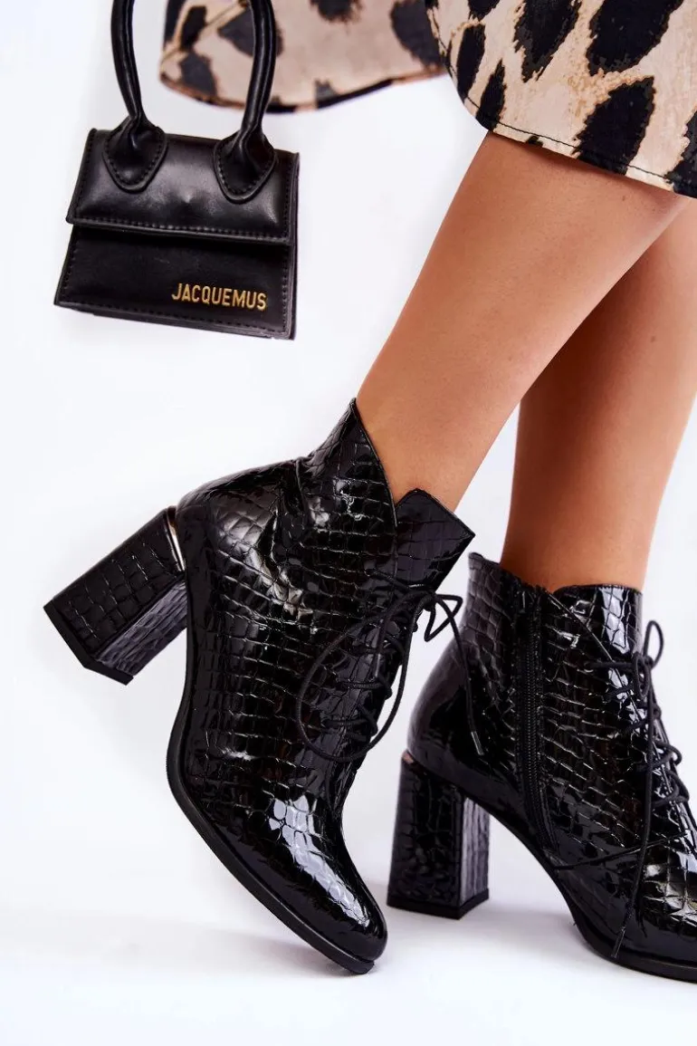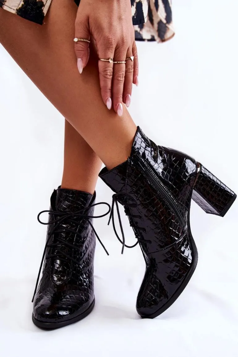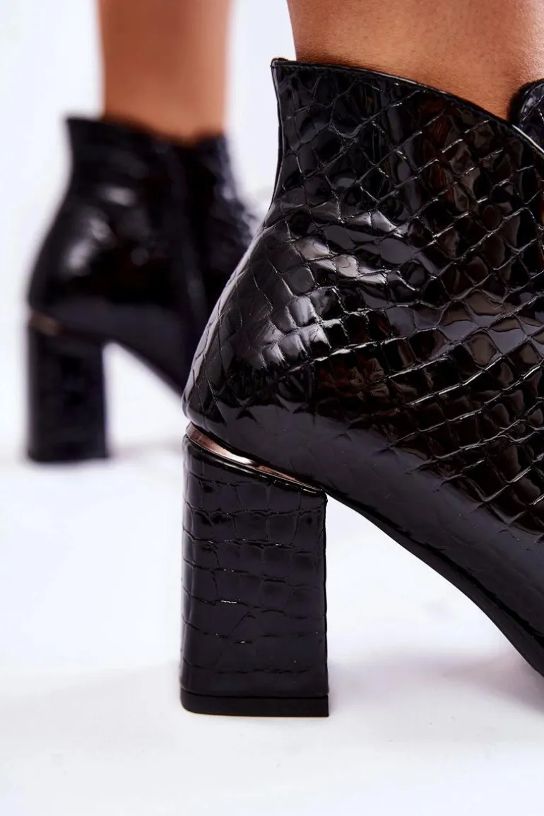 Damskie Lakierowane Botki Na Słupku Czarne Carrice