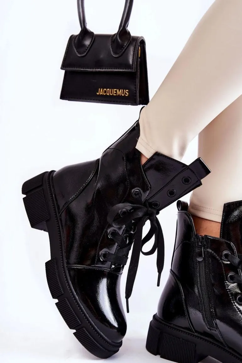 Damskie botki w stylu workerów zostały wykonane z wysokiej jakości eko skóry. Posiadają suwak z boku cholewki ułatwiający zakładanie obuwia. Botki osadzono na płaskim obcasie oraz delikatnej platformie ze żłobieniami. Posiadają w środku ocieplenie w postaci miękkiego futerka oraz usztywniany zapiętek. Na języku znajdują się ozdoby w postaci oczek od sznurówek. Ten model na pewno wykorzystasz w wielu stylizacjach! Przy wyborze rozmiaru prosimy sugerować się tabelą rozmiarów.