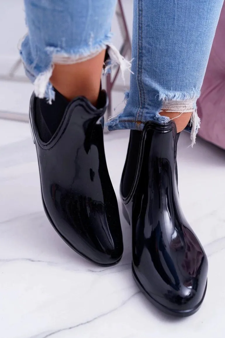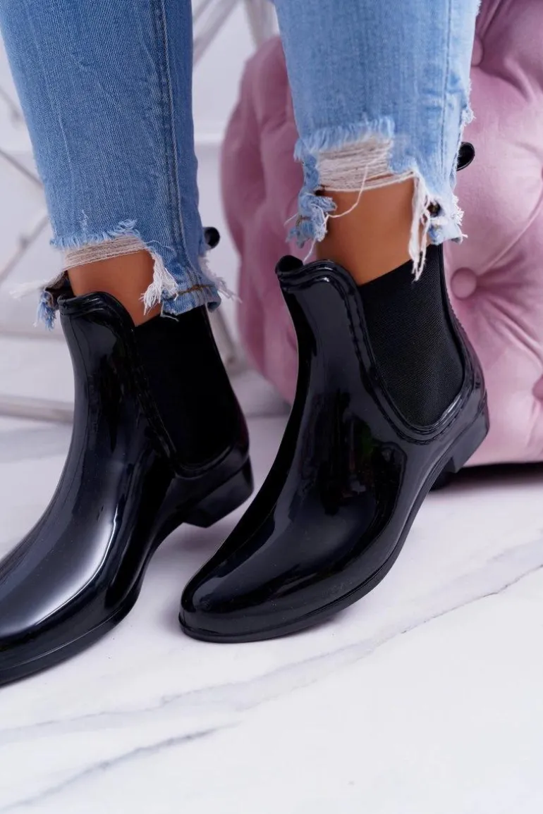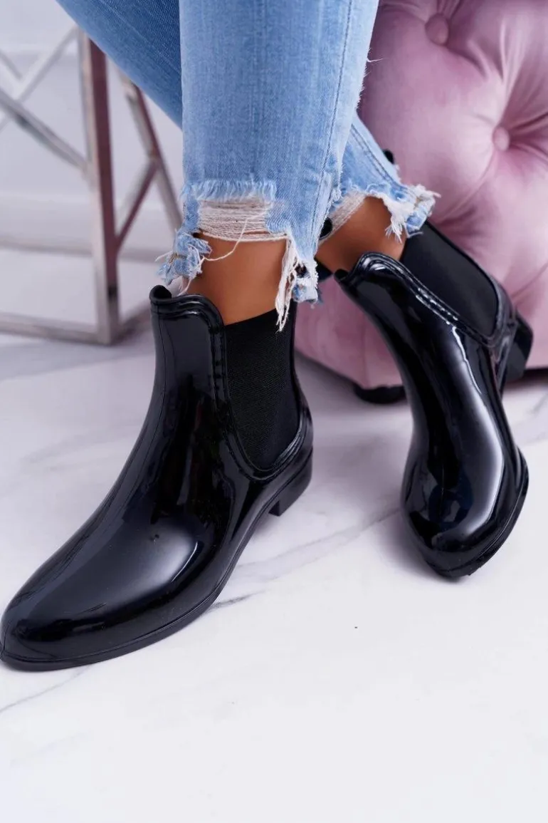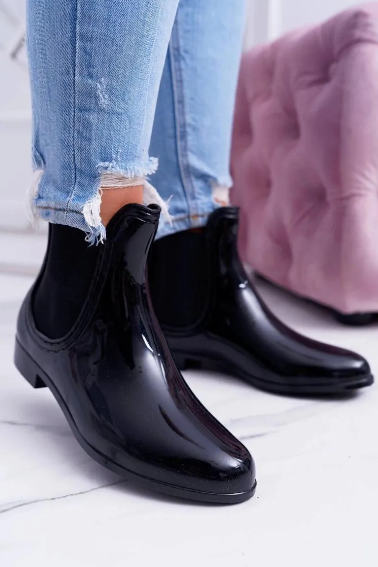 Damskie Lakierowane Wsuwane Czarne Kalosze Pola