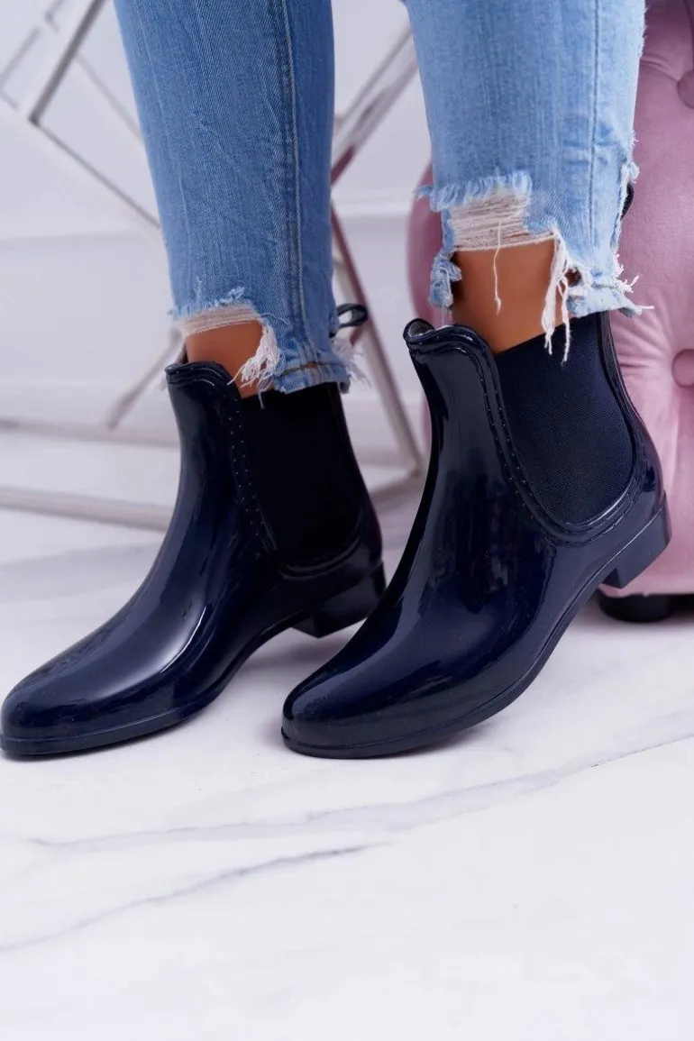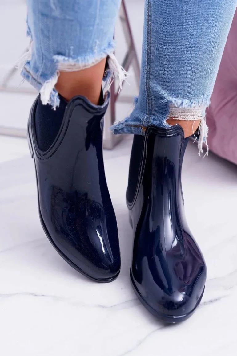 Damskie Lakierowane Wsuwane Kalosze Granatowe Pola