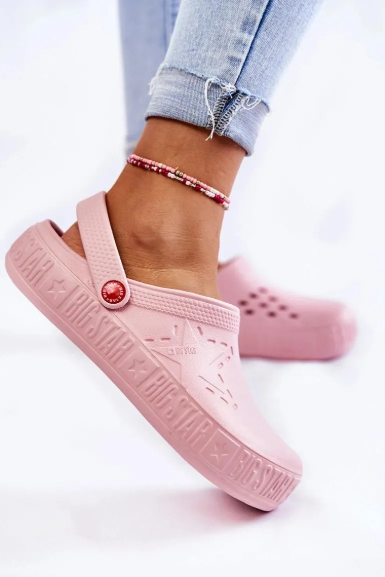 Damskie klapki marki Big Star wykonane zostały z wysokojakościowego tworzywa sztucznego przypominającego piankę. Wkładka jest profilowana. Ruchomy paseczek zabezpiecza przed przesuwaniem się stopy. Buty zostały osadzone na platformie. Idealny model do pracy w ogrodzie, na plażę czy basen. Otwory w cholewce pozwalają na odpowiednią wentylację obuwia. Ten niezwykle lekki model powinien znaleźć się w Twojej szafie! Przy wyborze rozmiaru prosimy sugerować się tabelą rozmiarów.