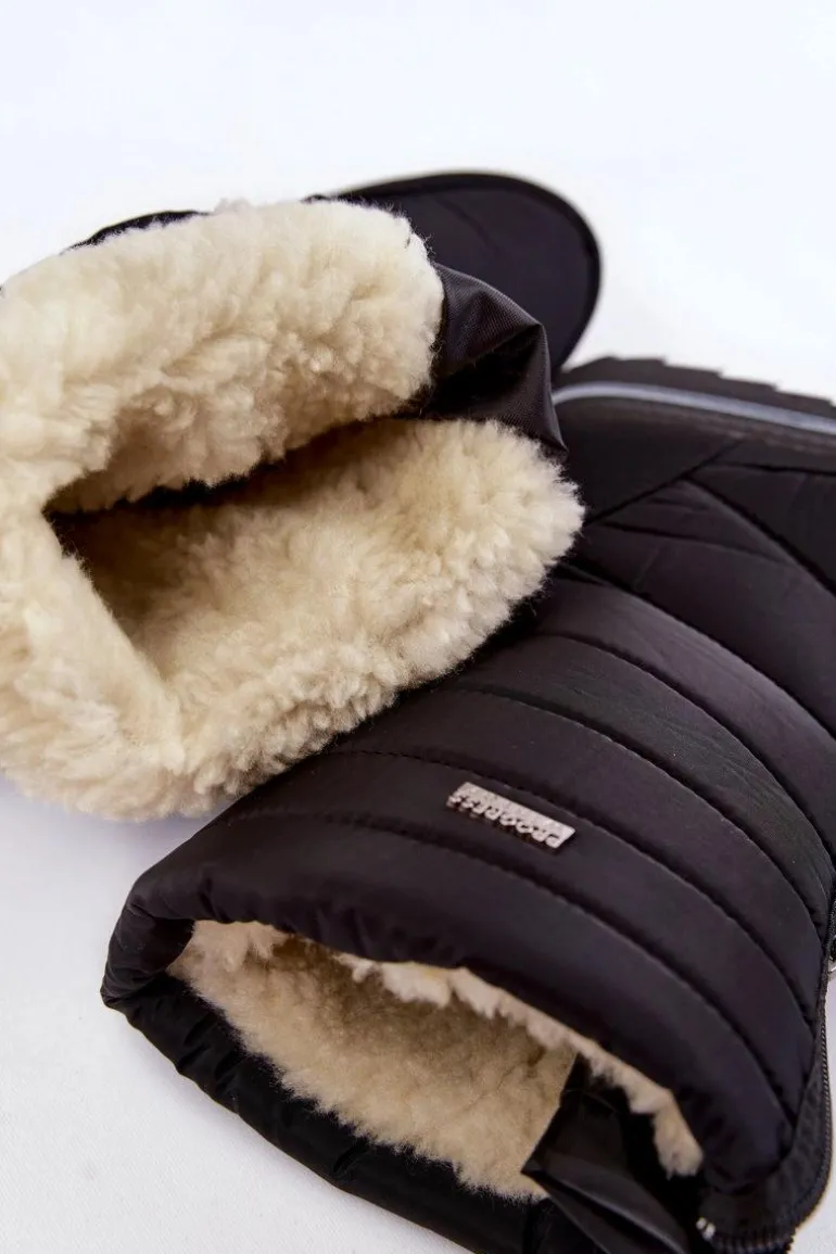 Damskie śniegowce są lekkie i wygodne w użytkowaniu. Wykonane z nieprzemakalnych materiałów. Śniegowce posiadają z przodu suwak. Modna cholewka z przeszyciami została wewnątrz ocieplona grubym futerkiem. Osadzone na platformie ze żłobieniami. Logo marki Progress znajduje się z boku oraz z tyłu śniegowców. Przy wyborze rozmiaru, prosimy sugerować się tabelą rozmiarów.