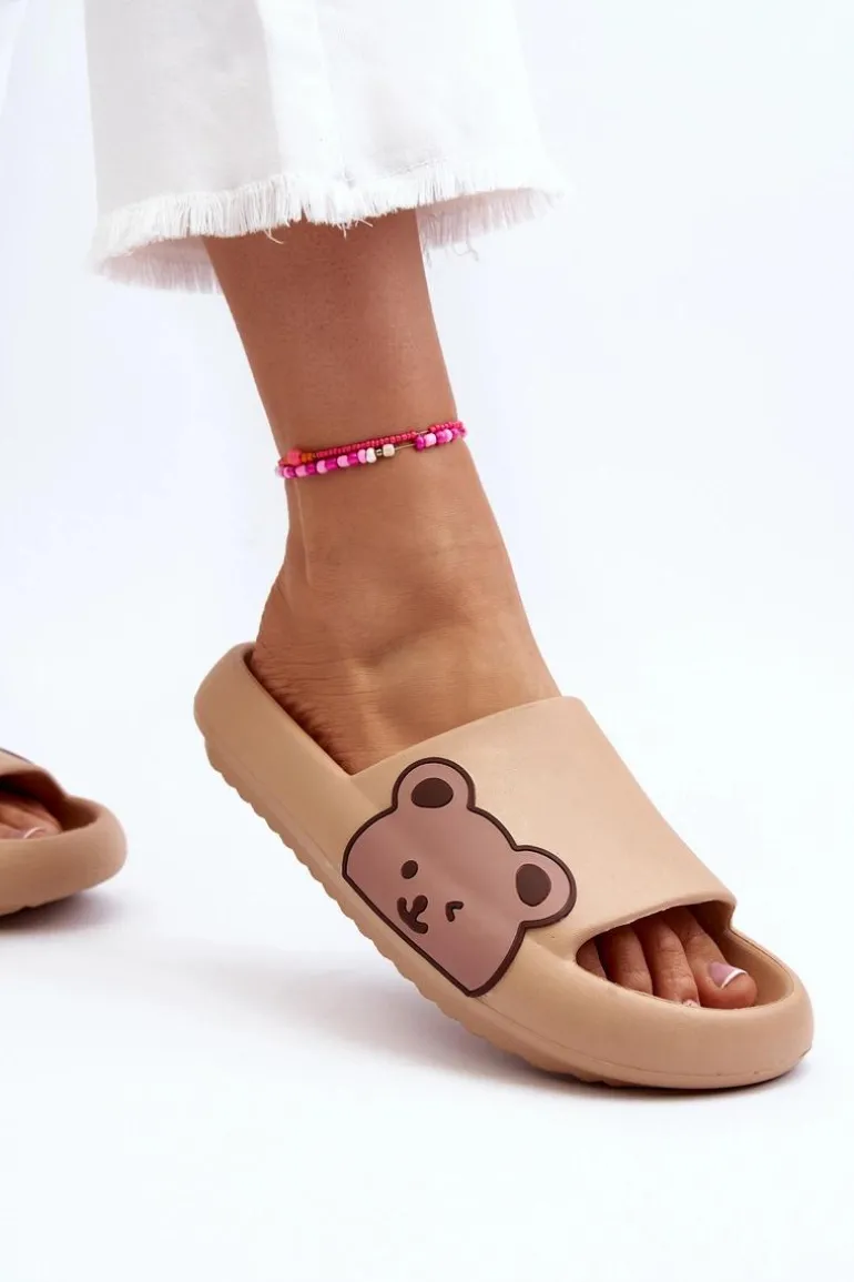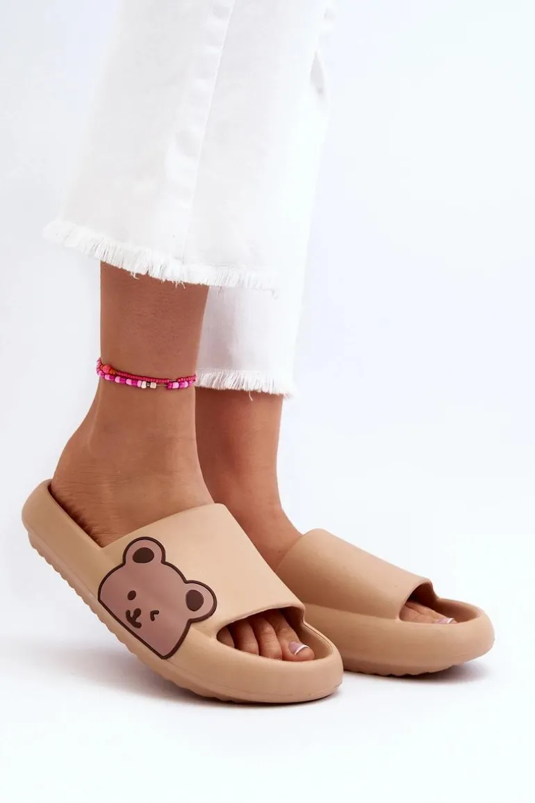 Urocze, damskie klapki zostały wykonane z piankowego tworzywa. Na boku cholewki znajduje się uroczy motyw misia. Model ten został osadzony na masywnej platformie. Możesz ich także używać jako obuwie domowe zamiast papci. Ten lekki model jest niezwykle wygodny podczas użytkowania. Koniecznie powinnaś je mieć! Przy wyborze rozmiaru prosimy sugerować się tabelą rozmiarów.