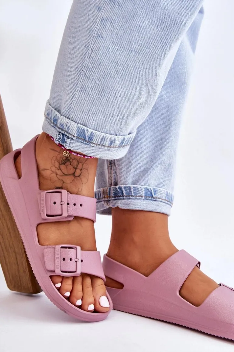 Sandały damskie wykonane z lekkiego, piankowego tworzywa. Model ten posiada regulowane paski zapinane na sprzączki. Świetny model na upalne dni! Osadzone na delikatnej platformie. Sandałki te posiadają z tyłu paseczek podtrzymujący stopę. Sprawdź także pozostałe modele damskich sandałek ! Przy wyborze rozmiaru prosimy sugerować się tabelą rozmiarów.