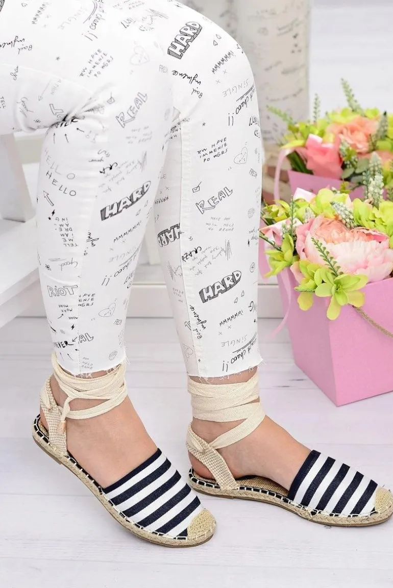 Piękne i wyróżniające się marynarskim wzorem najwspanialsze espadryle jakie można sobie wyobrazić. Nie dość że są bardzo wygodne to do tego świetnie wyglądają! Podeszwa i nosek zdobione oraz wykonane z lnianego espadrylu co nadaje im jeszcze większego letniego charakteru. Dodatkowego stylu dodaje wiązanie wokół kostki. Pasują zarówno na elegancko jak i do codziennych stylizacji. Najlepsze espadryle tylko na butosklep.pl