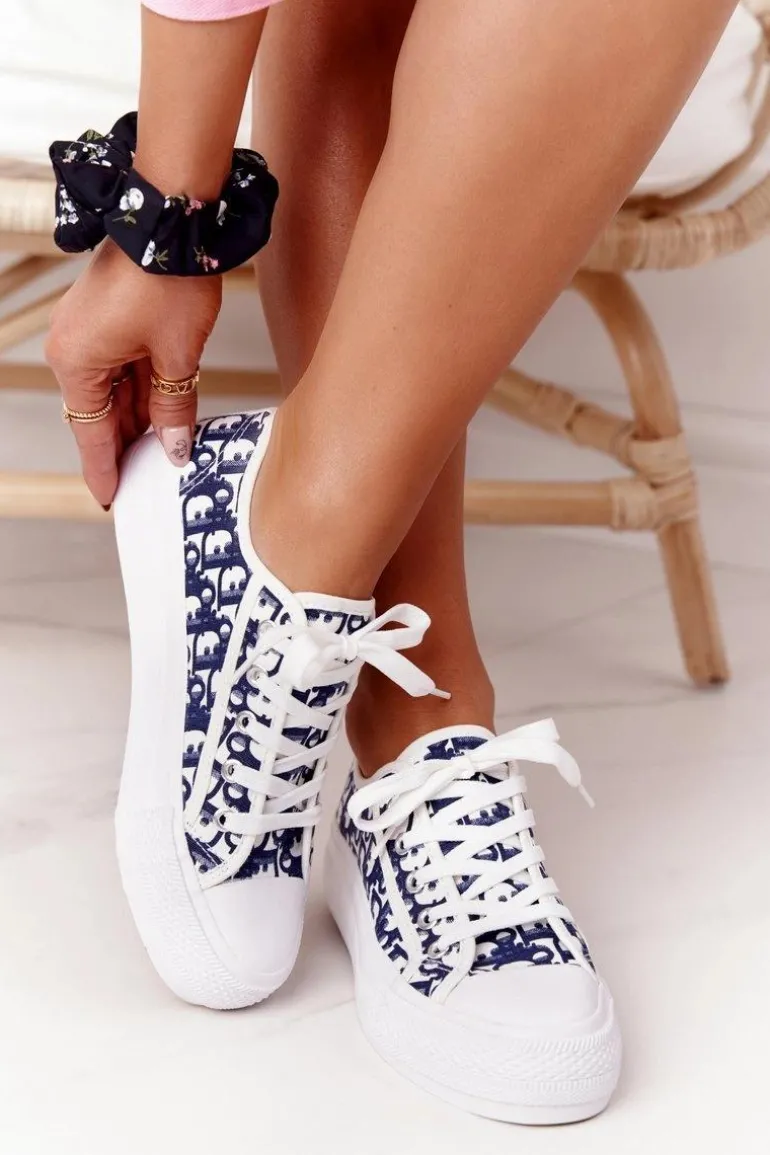 Damskie Logowane Trampki Biało-Granatowe Daphne