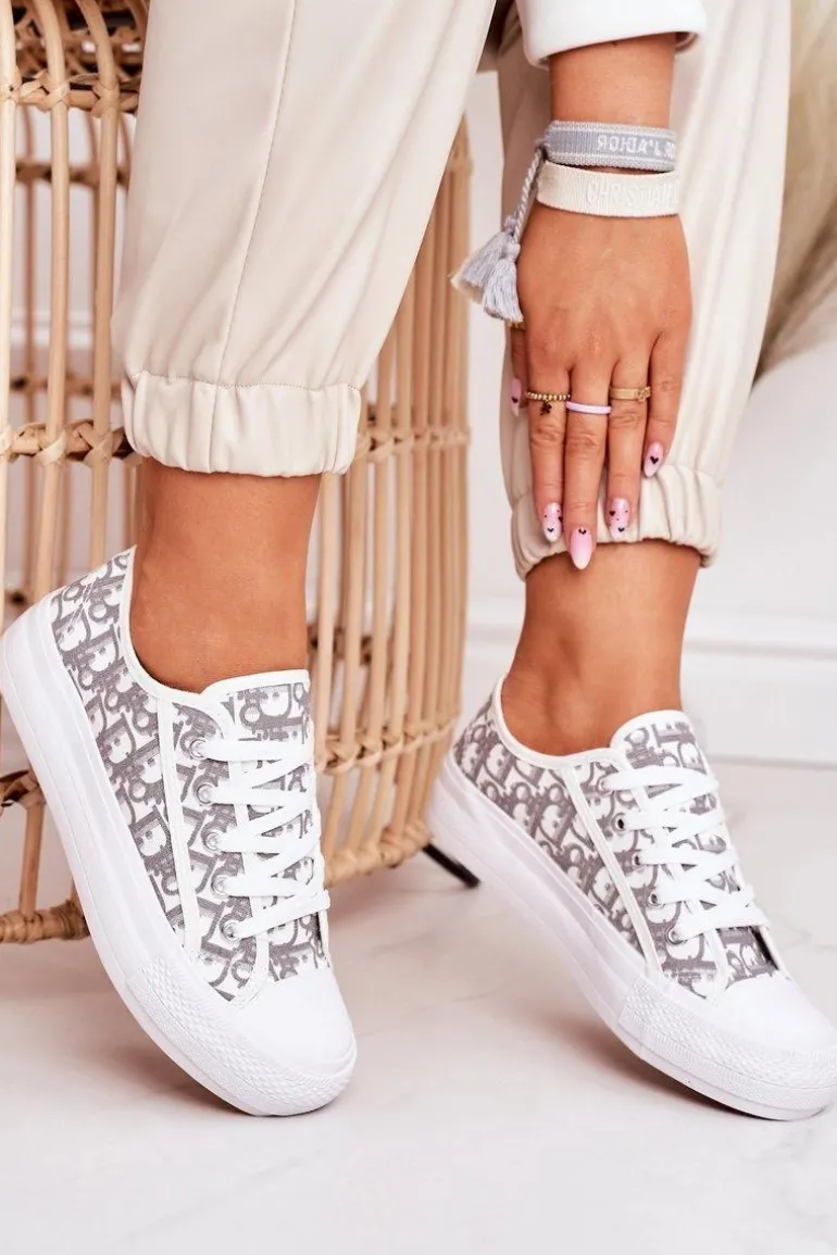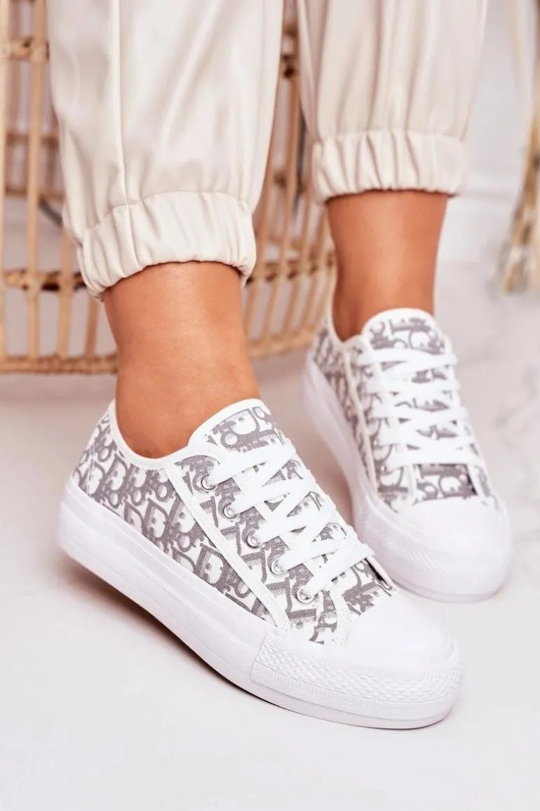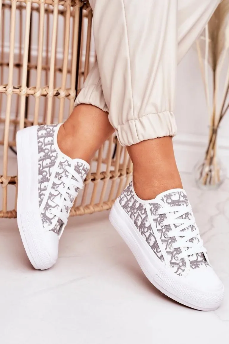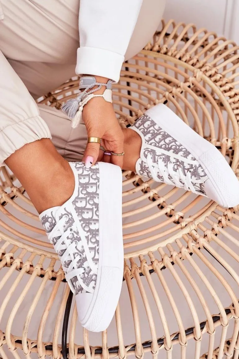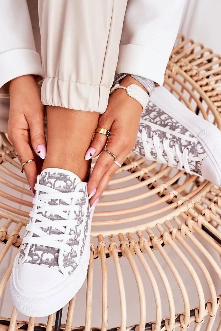 Damskie Logowane Trampki Biało-Szare Daphne