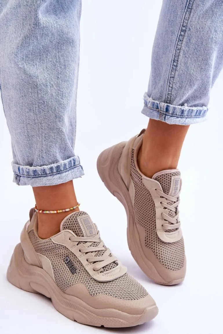 Damskie sneakersy marki Big Star zostały wykonane z połączenia tkaniny oraz eko skóry. Buty posiadają także wzmocniony zapiętek. Sneakersy posiadają wkładkę Memory Foam System, która zapamiętuje kształt stopy, zapewnia doskonałe dopasowanie, absorbuje wstrząsy, jest odporna na odkształcenia oraz pozwala na odparowanie wilgoci i regulację temperatury. Buty zostały osadzone na platformie i płaskim obcasie. Przy wyborze rozmiaru prosimy sugerować się tabelą rozmiarów.
