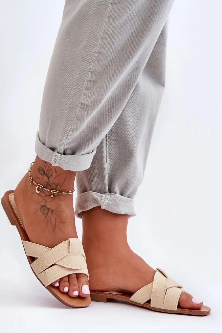 Damskie klapki na płaskim obcasie z gumową, antypoślizgową podeszwą świetnie sprawdzą się podczas codziennego użytkowania. Cholewka została wykonana z materiału tekstylnego, natomiast wkładka z połączenia tworzywa sztucznego i materiału. Ten klasyczny model charakteryzuje się przeplatanymi paskami. Prezentowany model zapewni wysoki komfort, nawet w najgorętsze dni! Przy wyborze rozmiaru prosimy sugerować się tabelą rozmiarów.