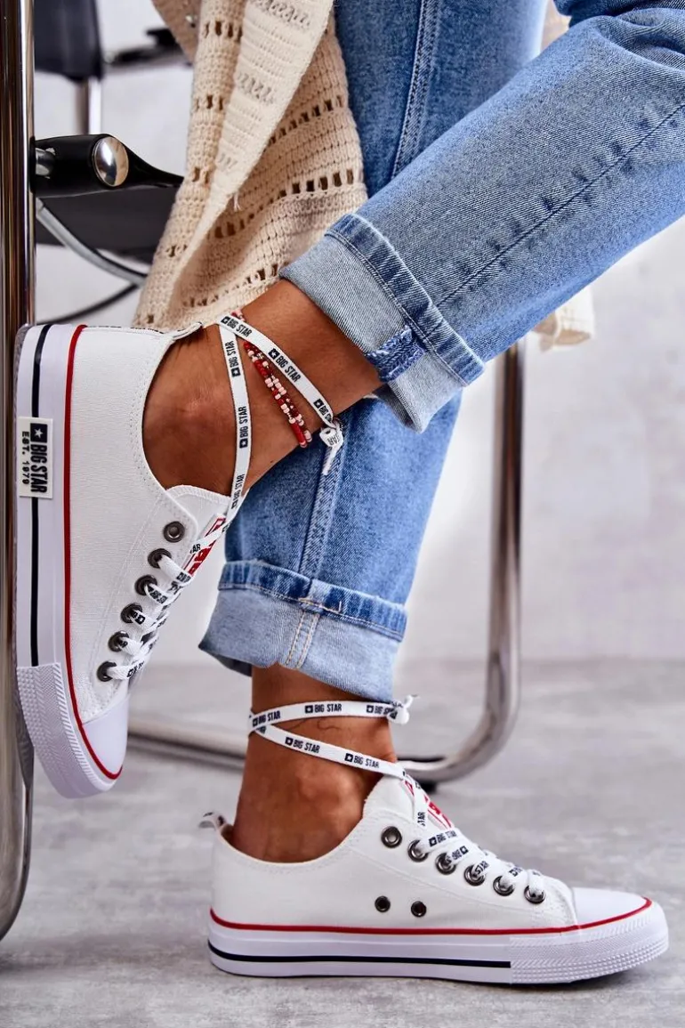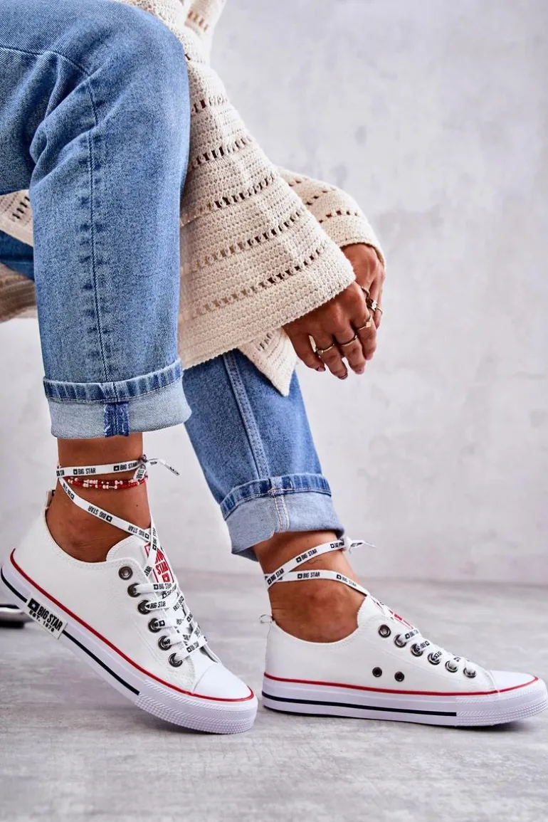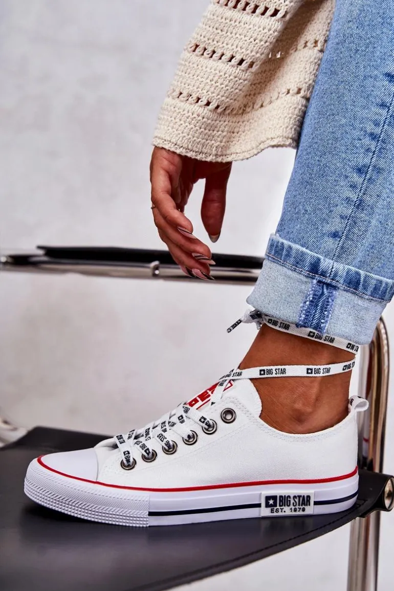Ponadczasowe trampki damskie marki Big Star zostały wykonane z materiału tekstylnego. Posiadają gumowy, wzmacniany nosek. Model charakteryzuje się logowanymi sznurowadłami. Podeszwa wraz z platformą wykonane z gumowego tworzywa, dzięki którym model ten jest antypoślizgowy. Wkładka materiałowa. Klasyczne trampki z pewnością świetnie będą prezentować się w wielu stylizacjach. Przy wyborze rozmiaru prosimy sugerować się tabelą rozmiarów.