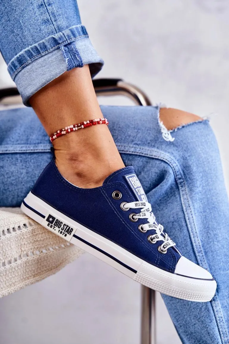 Ponadczasowe trampki damskie marki Big Star zostały wykonane z materiału tekstylnego. Posiadają gumowy, wzmacniany nosek. Model charakteryzuje się logowanymi sznurowadłami. Podeszwa wraz z platformą wykonane z gumowego tworzywa, dzięki którym model ten jest antypoślizgowy. Wkładka materiałowa. Klasyczne trampki z pewnością świetnie będą prezentować się w wielu stylizacjach. Przy wyborze rozmiaru prosimy sugerować się tabelą rozmiarów.