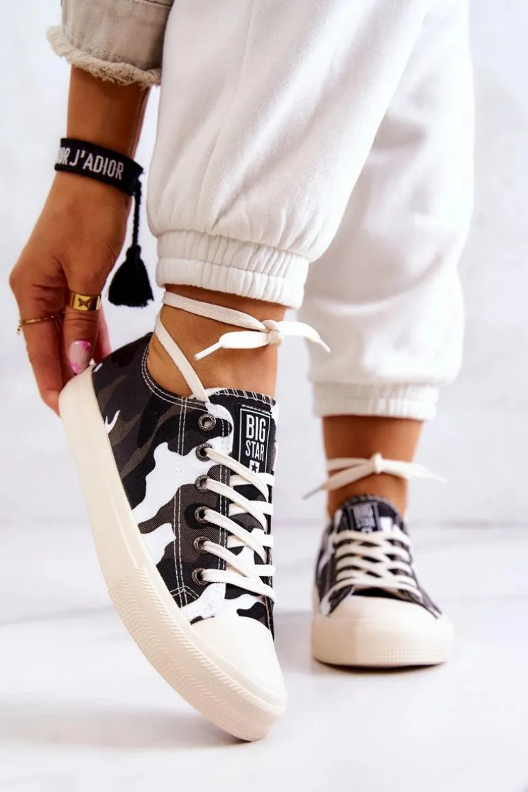 Lekkie i ponadczasowe trampki marki Big Star wykonane z materiału tekstylnego. Posiadają klasyczne wiązanie. Przód trampek jest wzmocniony gumowym tworzywem. Podeszwa antypoślizgowa. Ciekawy design trampek w połączeniu z tiulową spódnicą czy klasycznymi jeansami świetnie będzie prezentował się na tle innych modeli! Koniecznie powinnaś je mieć! Przy wyborze rozmiaru prosimy sugerować się tabelą rozmiarów.