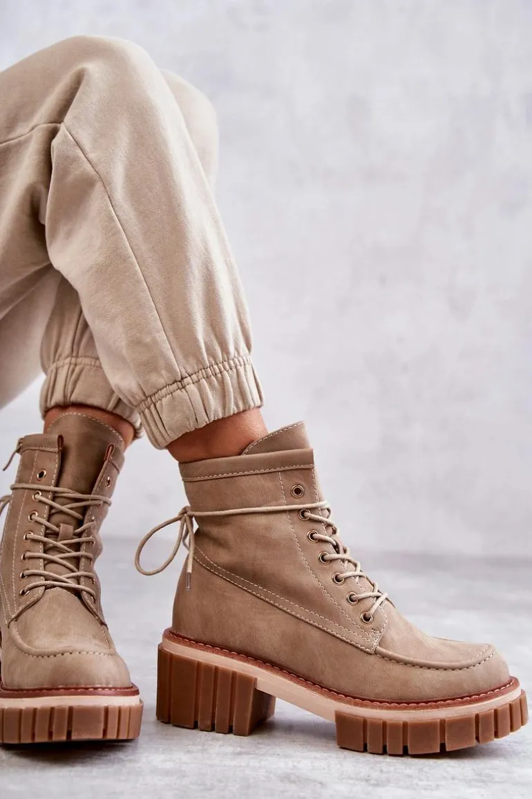 Wyjątkowe trapery damskie świetnie sprawdzą się w sezonie jesienno-zimowym. Wykonane z wysokiej jakości eko skóry. Modne przeszycia na cholewce. Botki osadzone na masywnej platformie i płaskim obcasie ze żłobieniami po bokach oraz obszytą nicią podeszwą. Ocieplone miłym w dotyku kocem obuwniczym. Podeszwa jest antypoślizgowa. Przy wyborze rozmiaru prosimy sugerować się tabelą rozmiarów.
