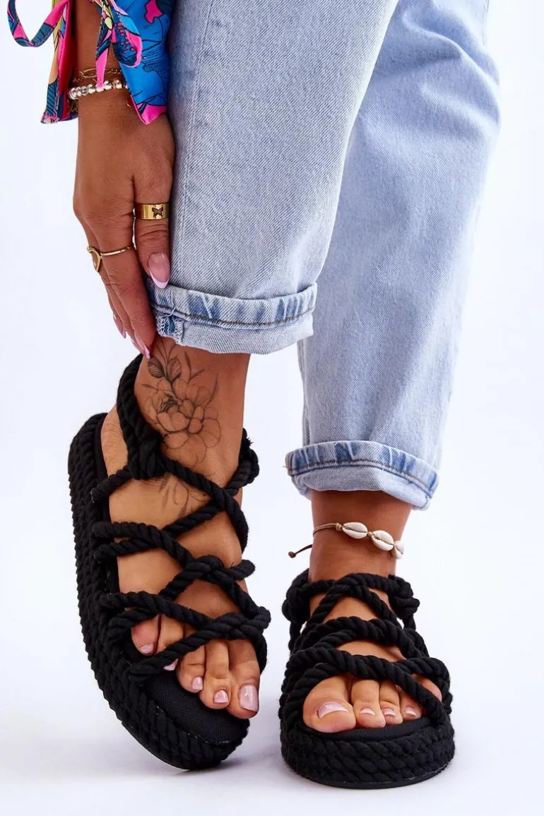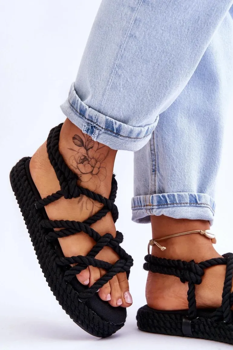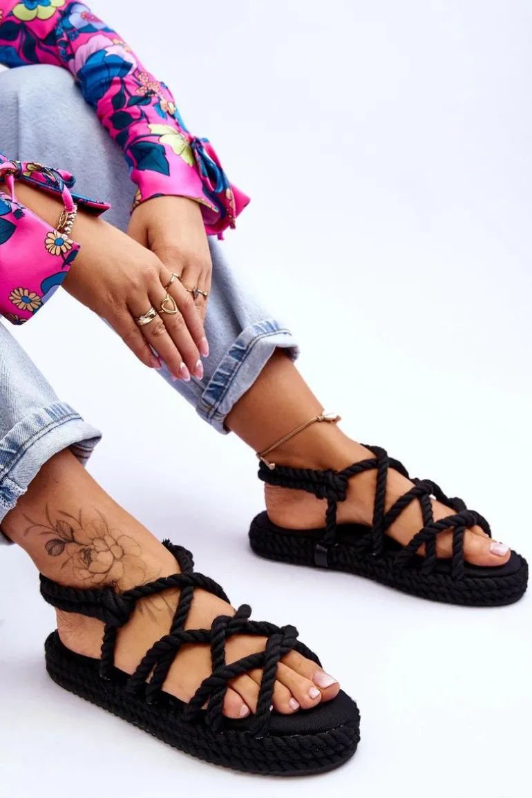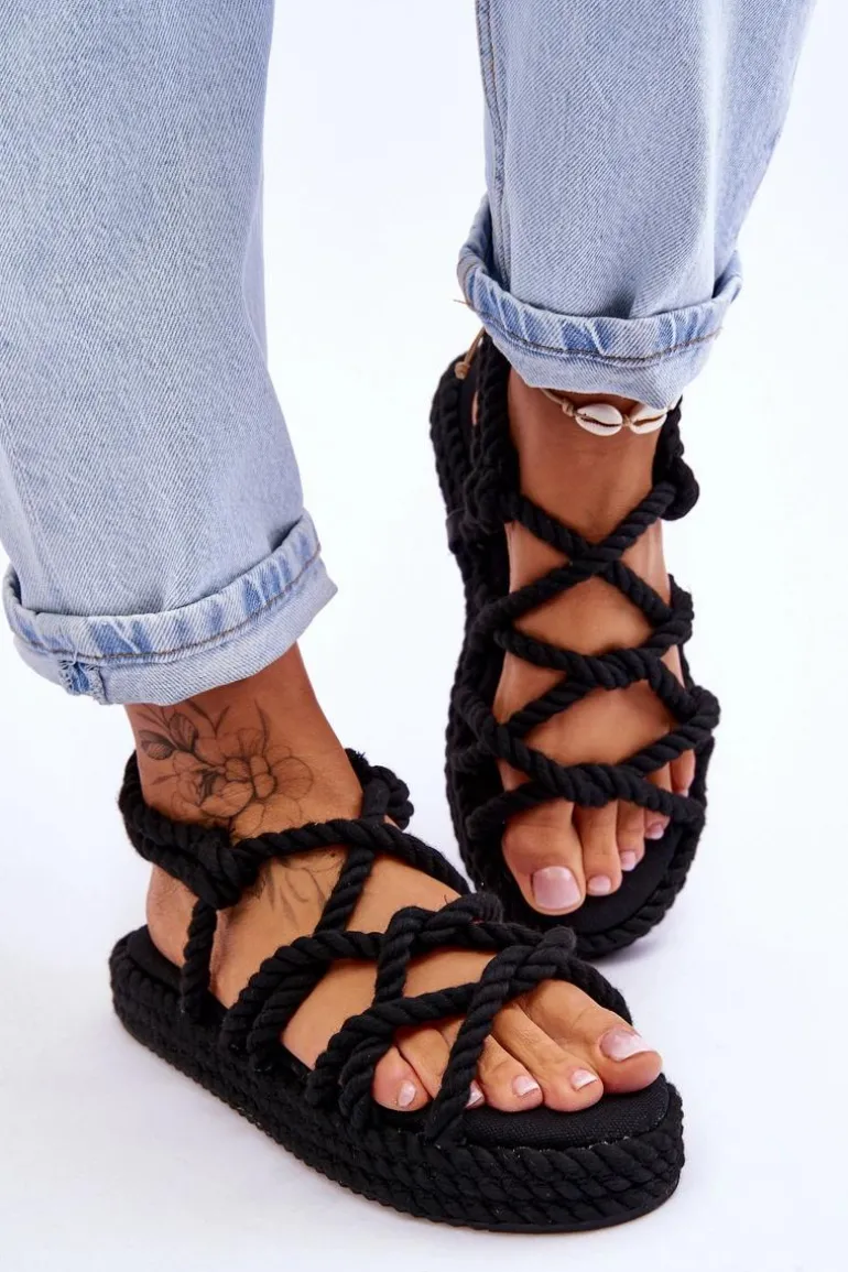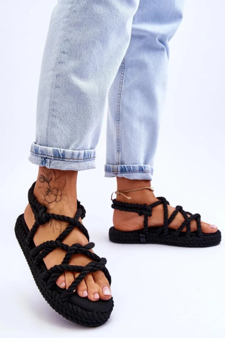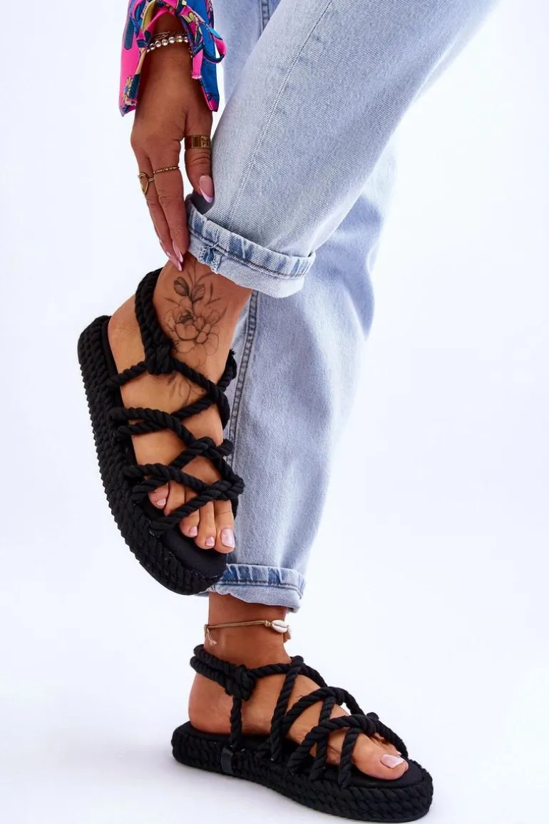 Damskie Modne Plecione Sandały Czarne Tiffanie