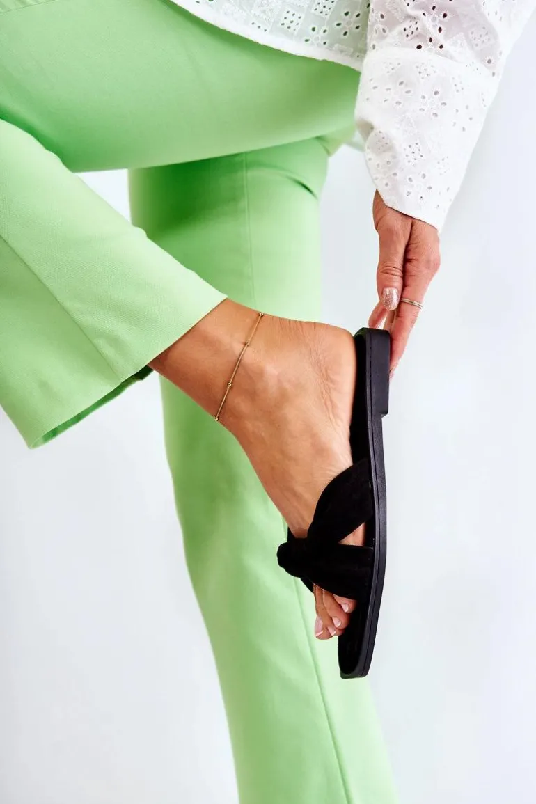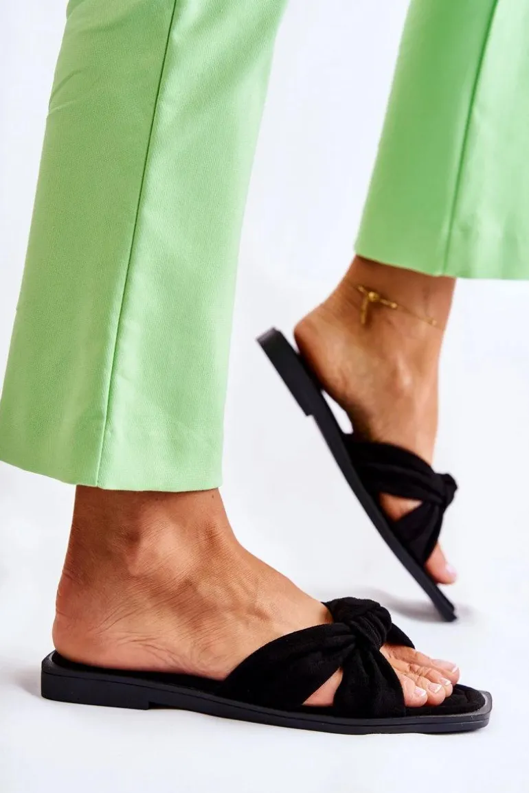 Damskie Modne Zamszowe Klapki Czarne Lorrie