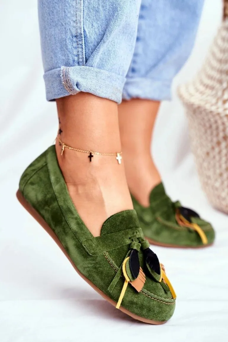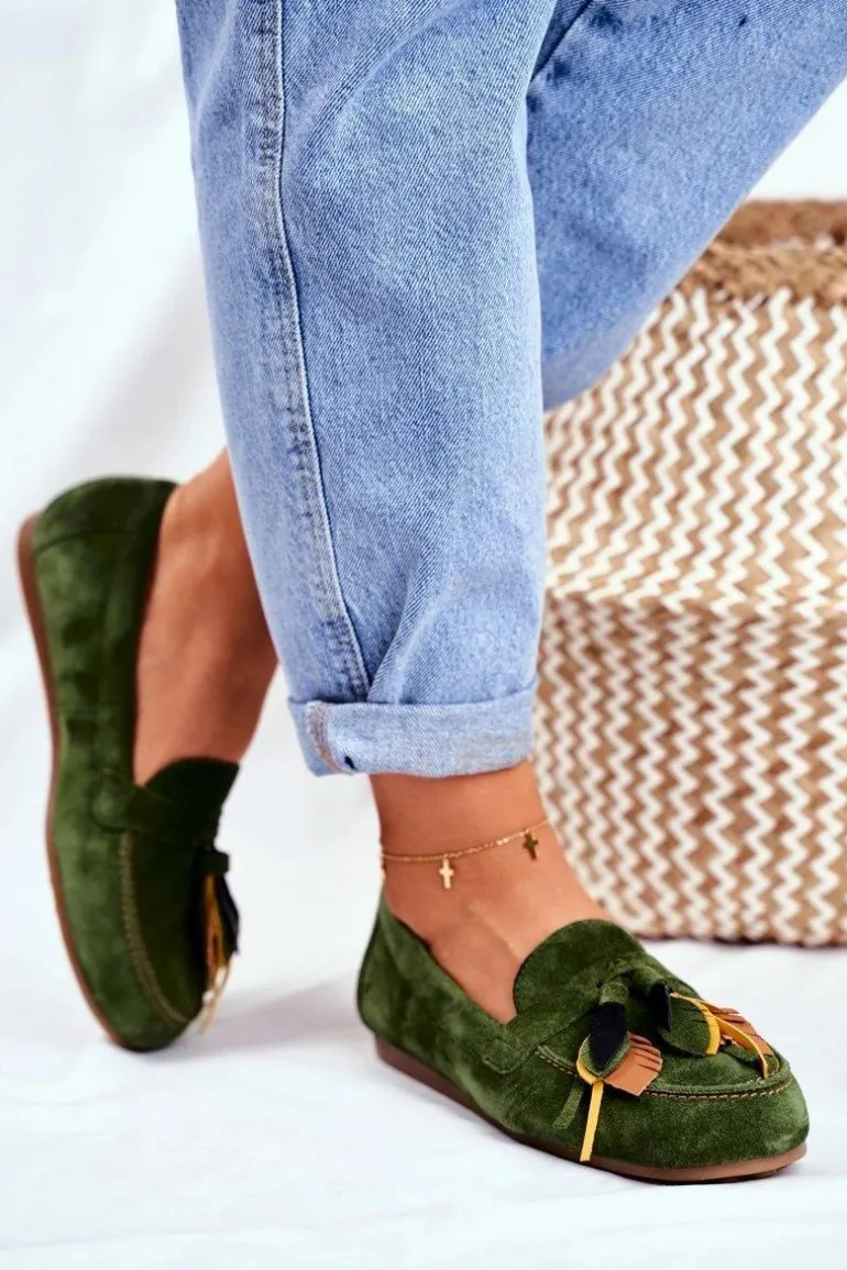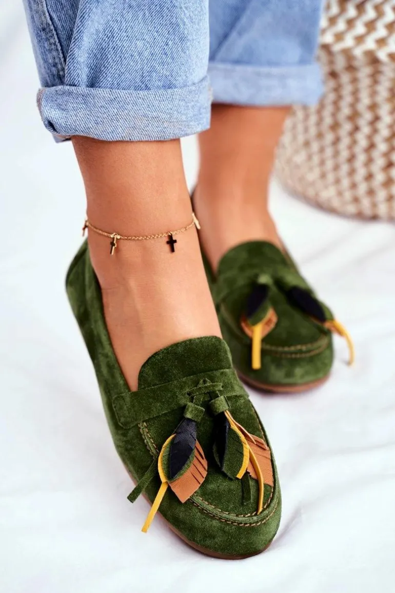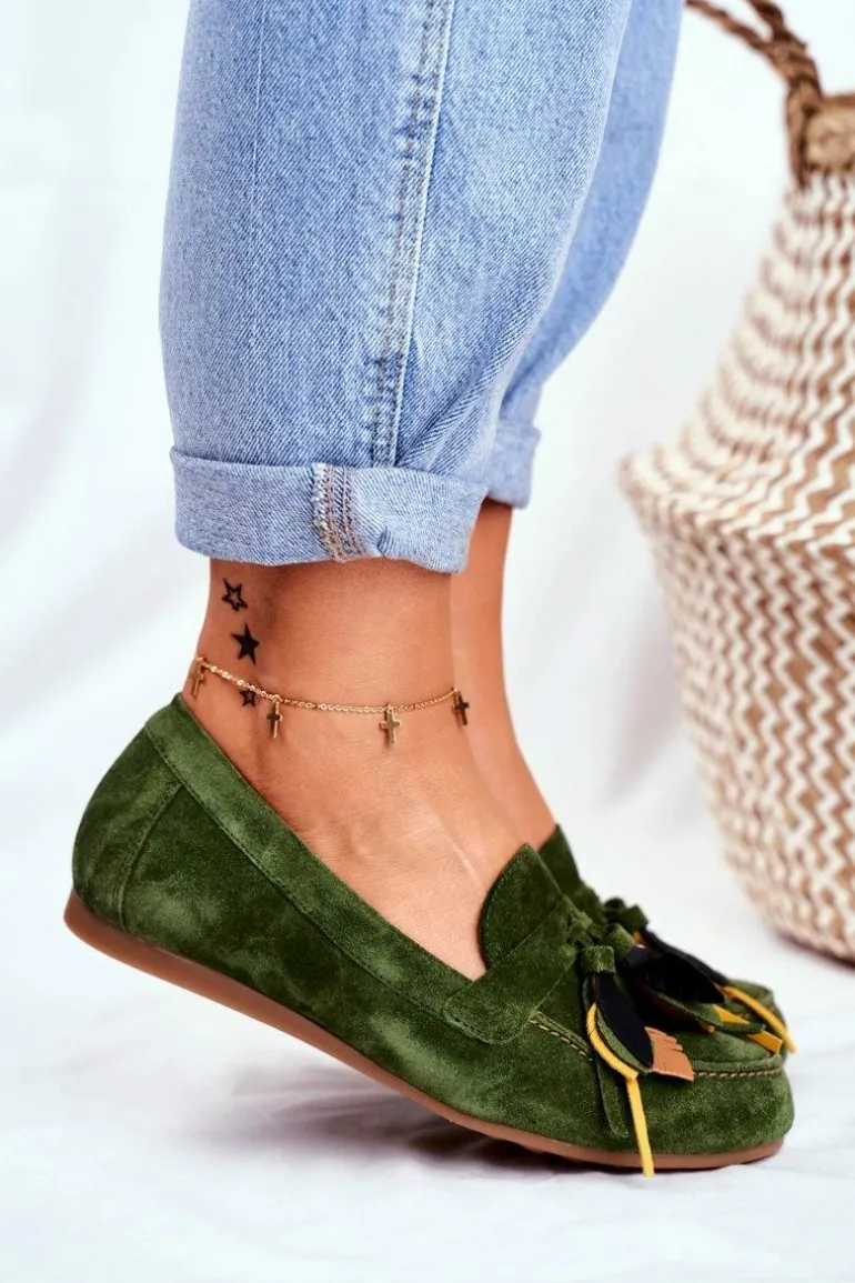 Damskie Mokasyny Maciejka Skórzane Zielone 04494-09/00-5