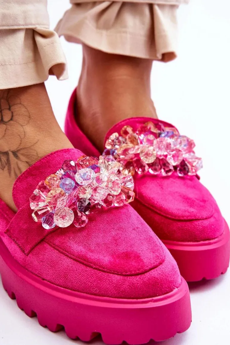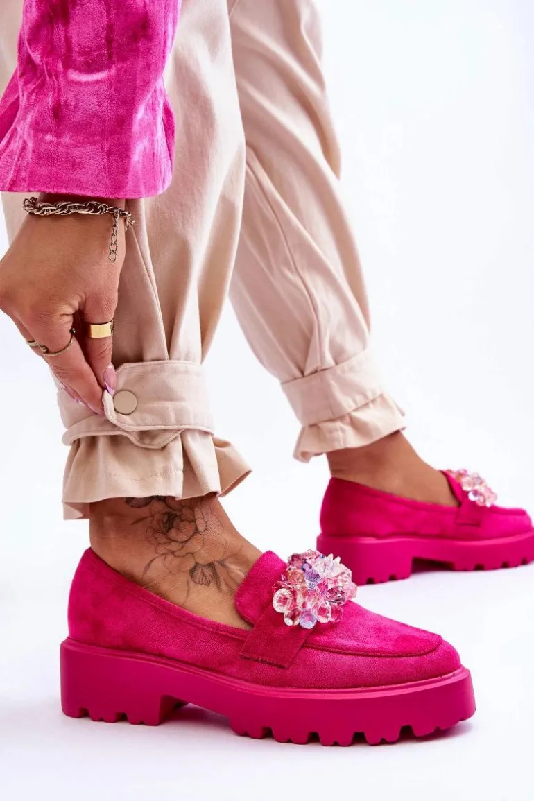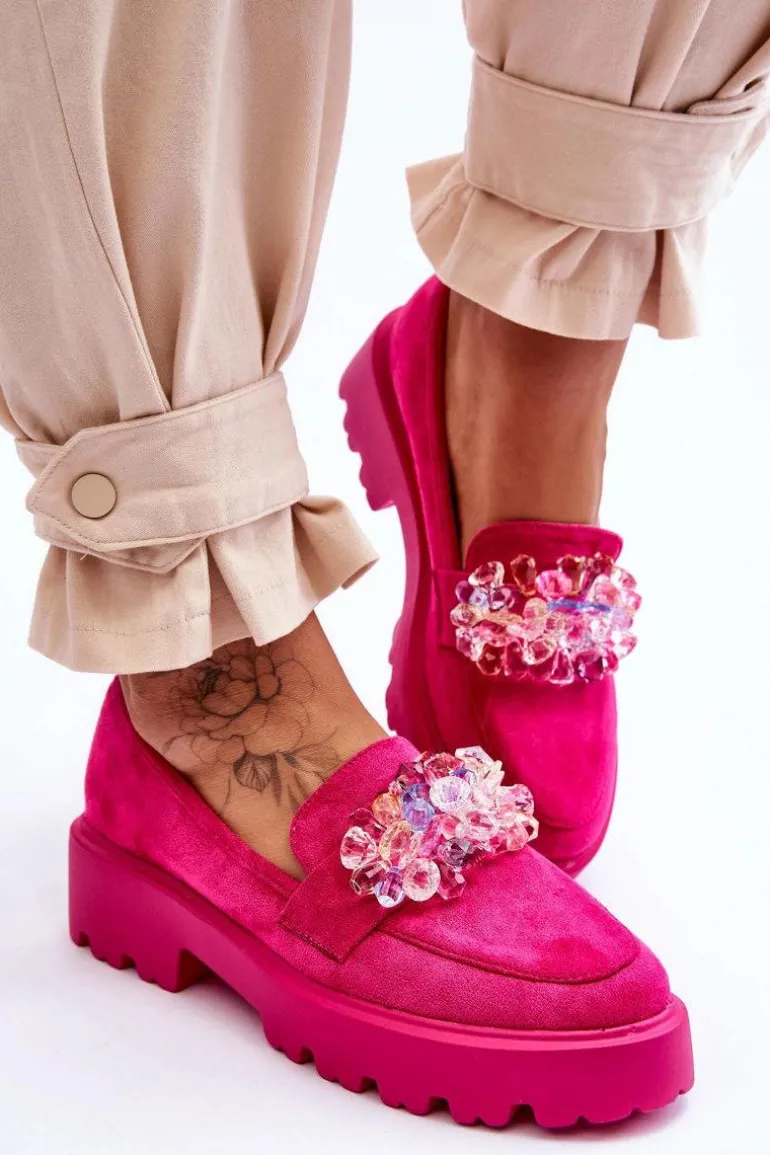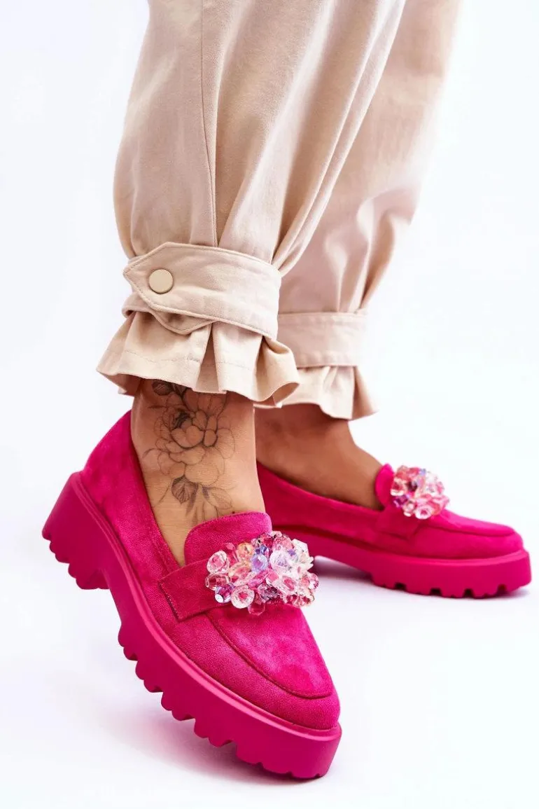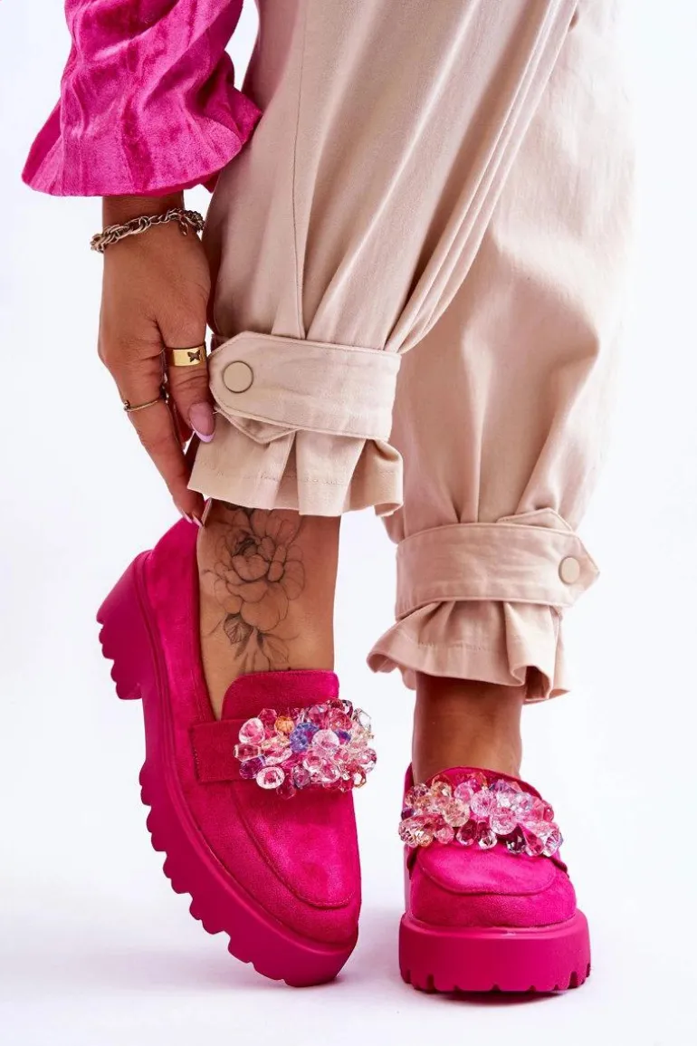 Damskie Mokasyny Na Platformie Z Ozdobami Fuksja Brenda