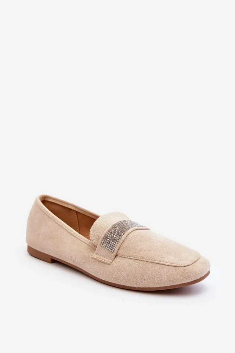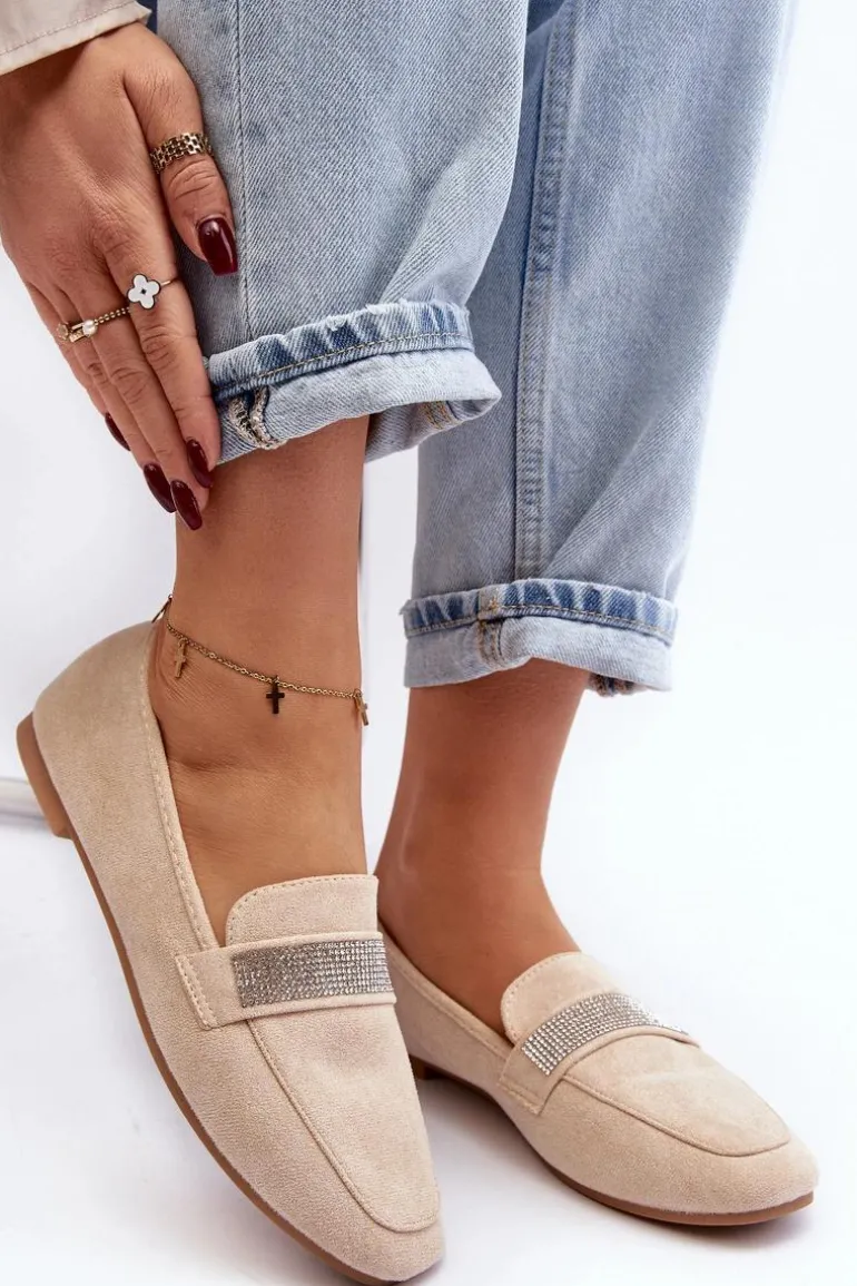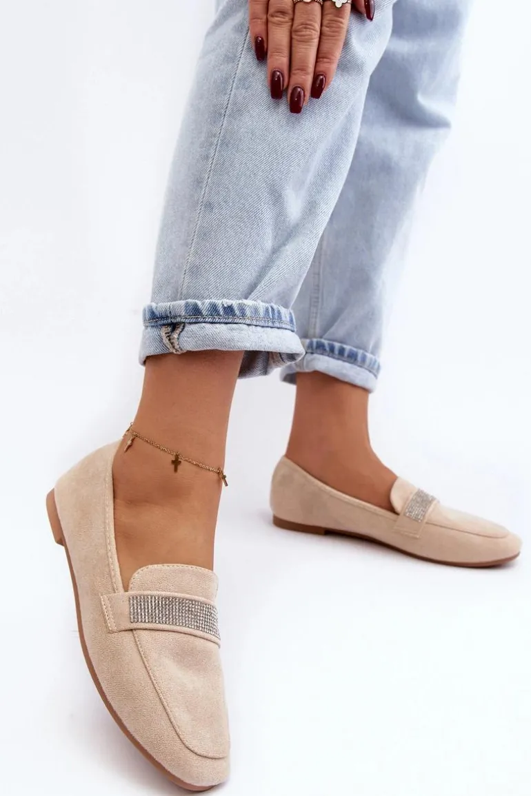 Mokasyny damskie wykonane z eko zamszu. Osadzone na płaskim obcasie. Noski zaokrąglone. Z przodu na pasku liczne, małe cyrkonie. Miękka i profilowana wkładka z eko skóry gwarantuje komfort noszenia przez cały dzień. Stylowe mokasyny to niezbędny element kobiecej garderoby! Koniecznie musisz je mieć! Przy wyborze rozmiaru prosimy sugerować się tabelą rozmiarów.