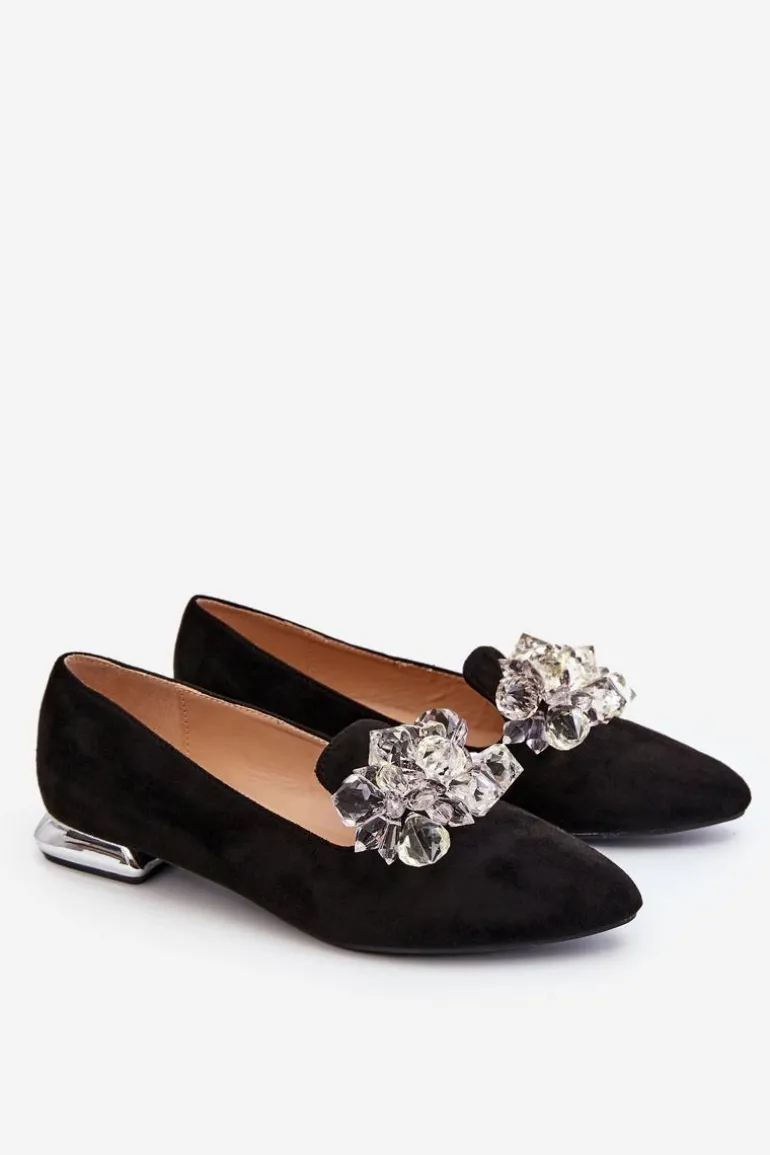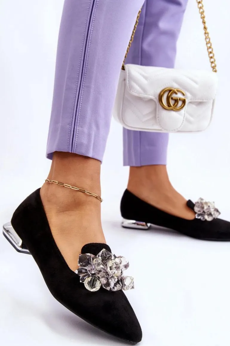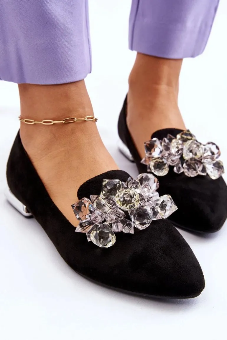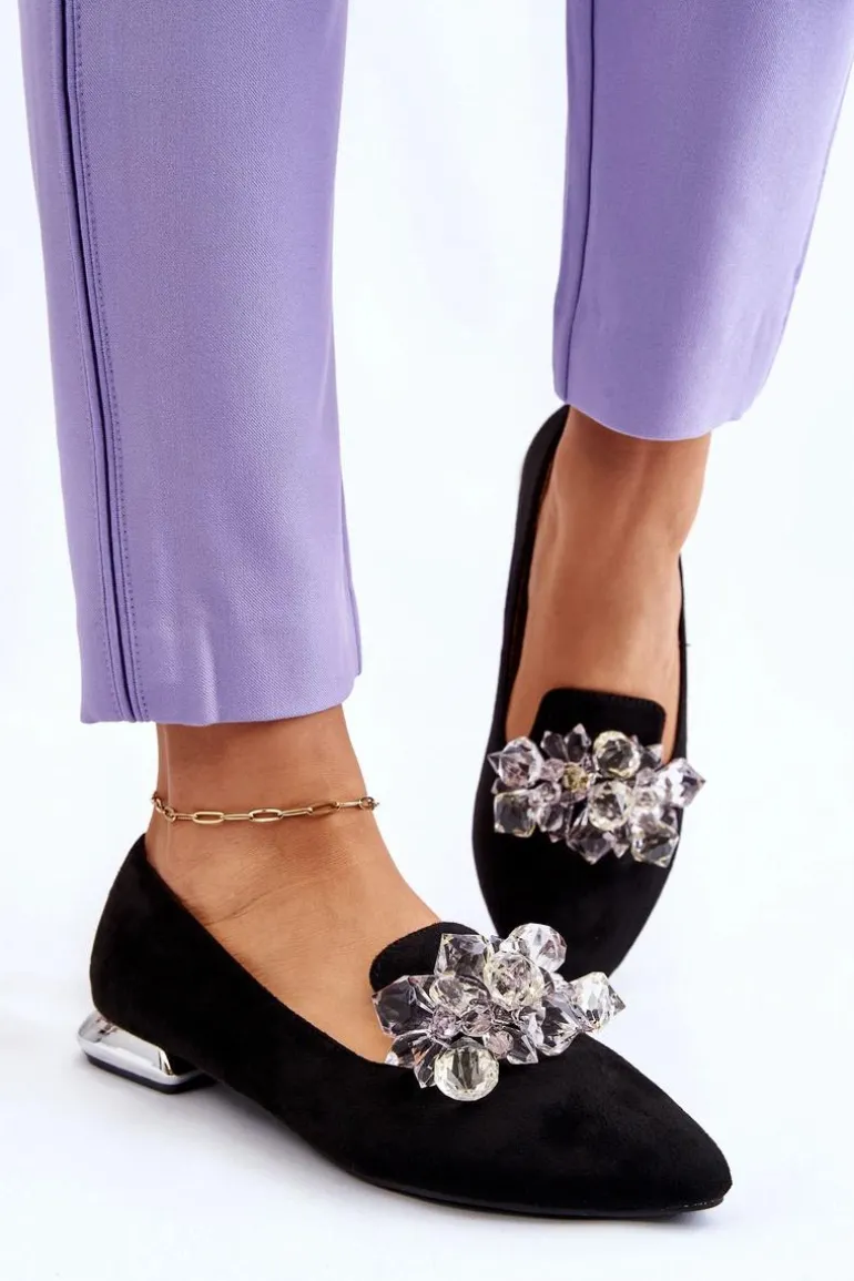 Damskie Mokasyny Z Ozdobami Na Płaskim Obcasie Czarne Sloane