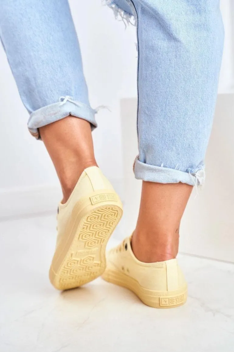 Damskie trampki polskiej marki BIG STAR to klasyczna forma i modny kolor. Kultowe już trampki pasują do wielu stylizacji. Buty dobrze dopasowują się do kształtu stopy, posiadają miękką, materiałową wkładkę. Koniecznie sprawdź całą naszą kolekcję butów BIG STAR. Przy wyborze rozmiaru prosimy sugerować się tabelą rozmiarów.