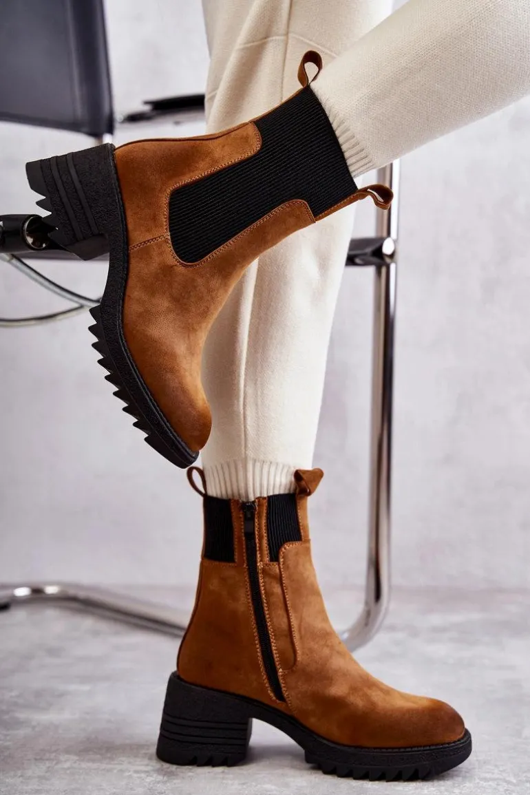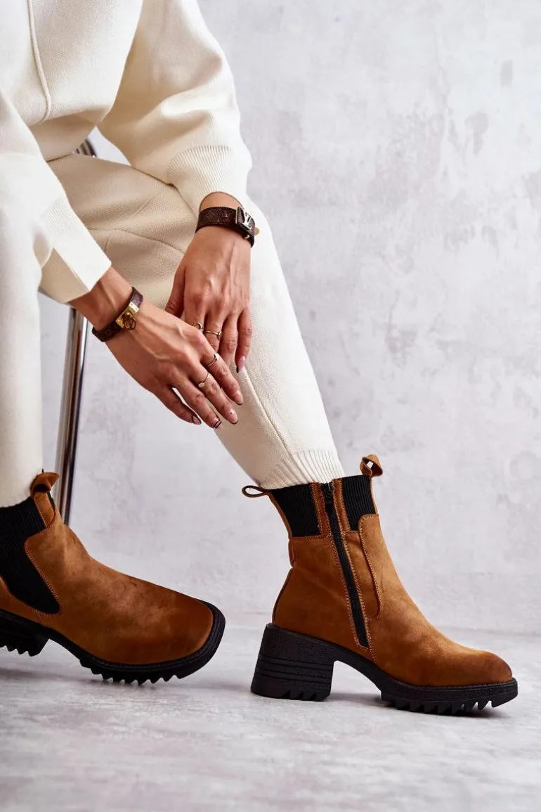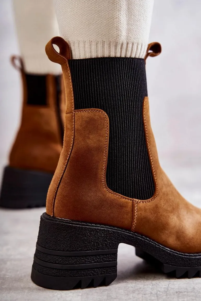 Damskie botki zostały wykonane z eko skóry. Posiadają w środku ocieplenie w postaci koca obuwniczego. Zamykane z boku cholewki na suwak. Osadzone na platformie i obcasie w postaci masywnego słupka ze żłobieniami. Zapiętek w tych botkach jest usztywniany. Botki posiadają kwadratowy nosek. U góry cholewki znajdują się pętelki ułatwiające zakładanie i ściąganie obuwia. Przy wyborze rozmiaru prosimy sugerować się tabelą rozmiarów.