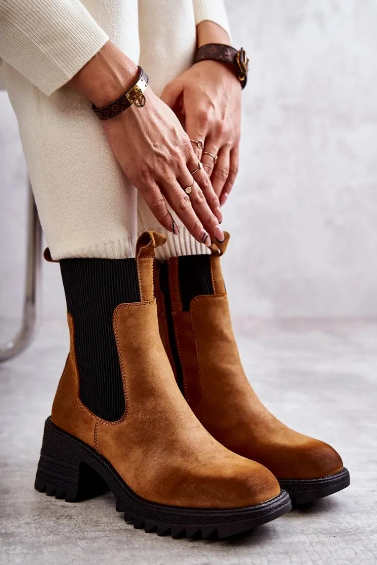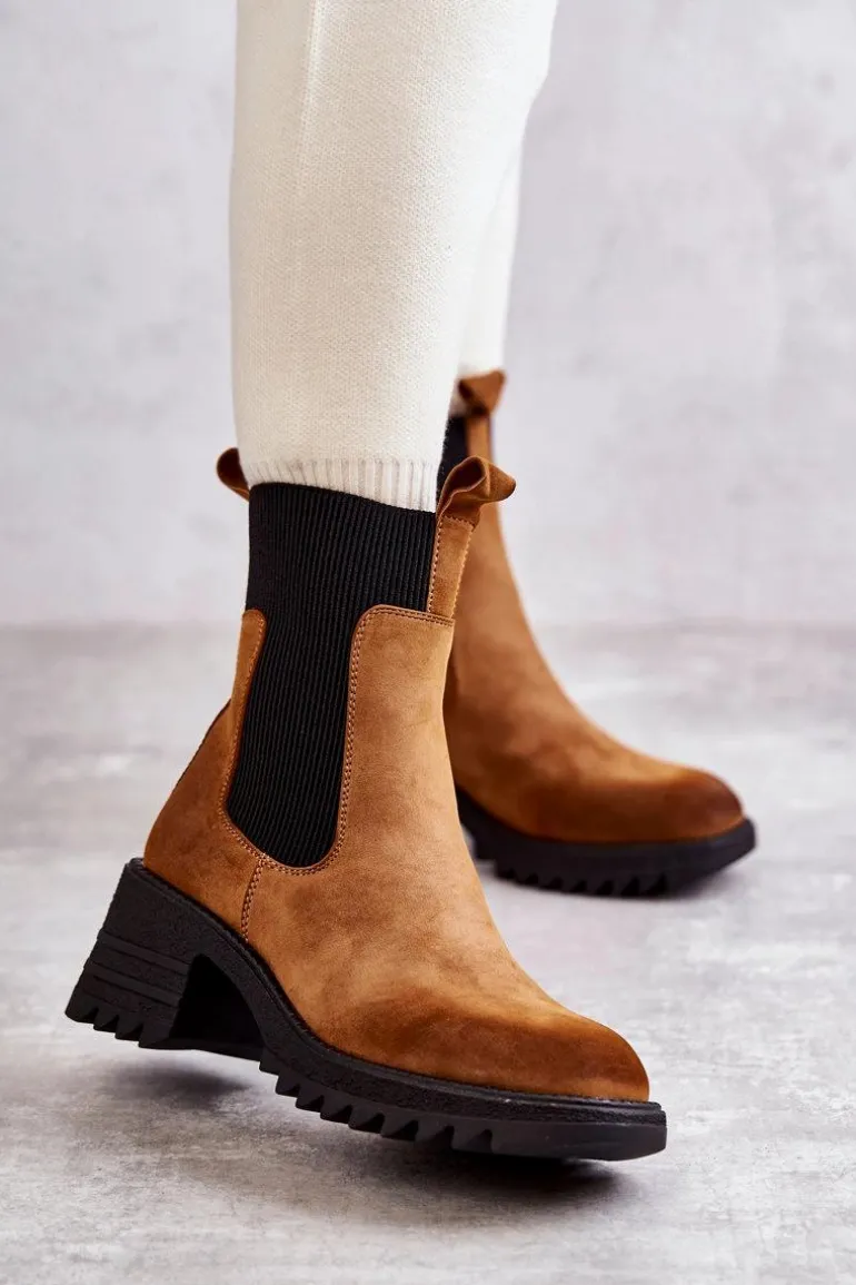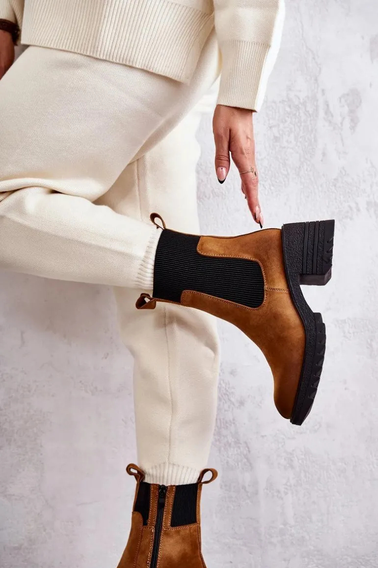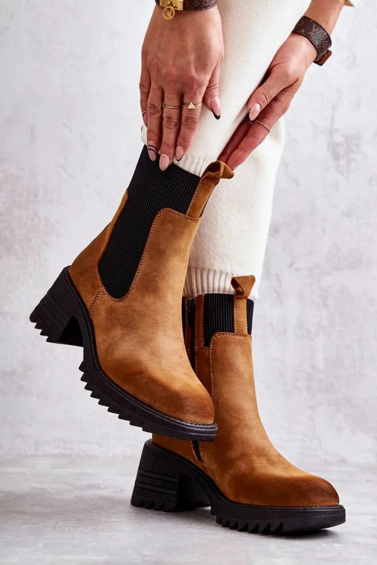 Damskie botki zostały wykonane z eko skóry. Posiadają w środku ocieplenie w postaci koca obuwniczego. Zamykane z boku cholewki na suwak. Osadzone na platformie i obcasie w postaci masywnego słupka ze żłobieniami. Zapiętek w tych botkach jest usztywniany. Botki posiadają kwadratowy nosek. U góry cholewki znajdują się pętelki ułatwiające zakładanie i ściąganie obuwia. Przy wyborze rozmiaru prosimy sugerować się tabelą rozmiarów.
