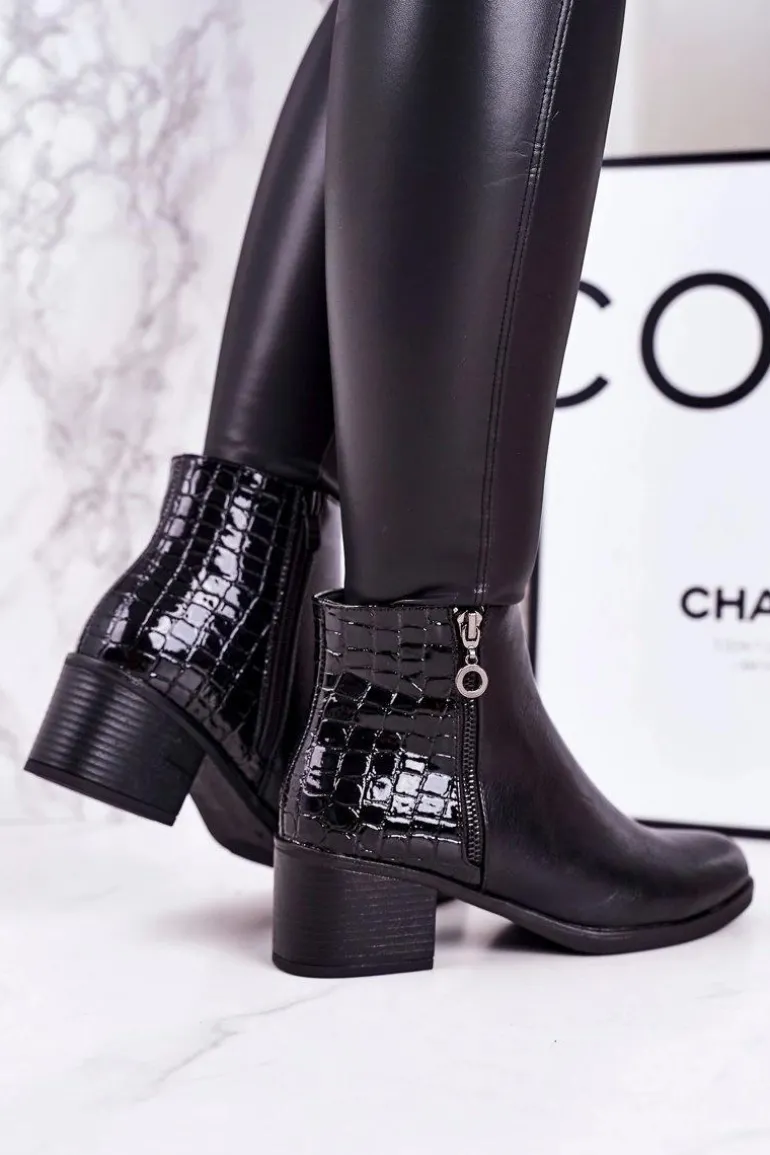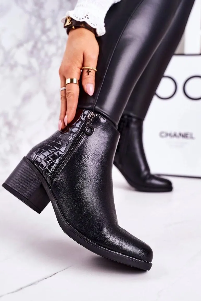 Damskie Ocieplane Botki Na Obcasie Print Zwierzęcy Czarne Confidence