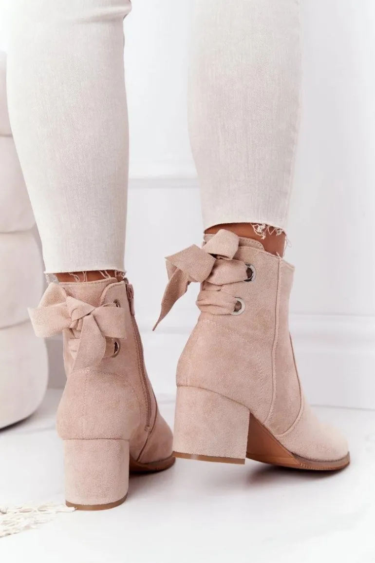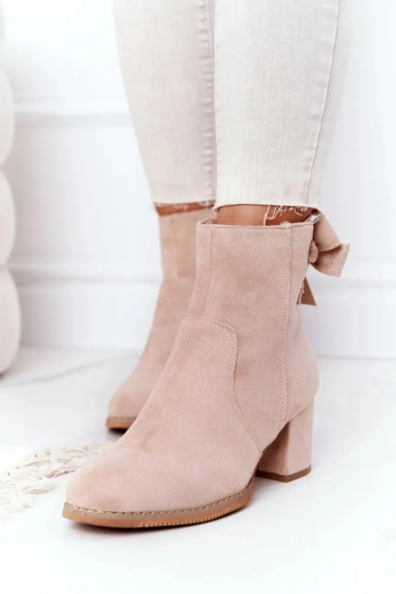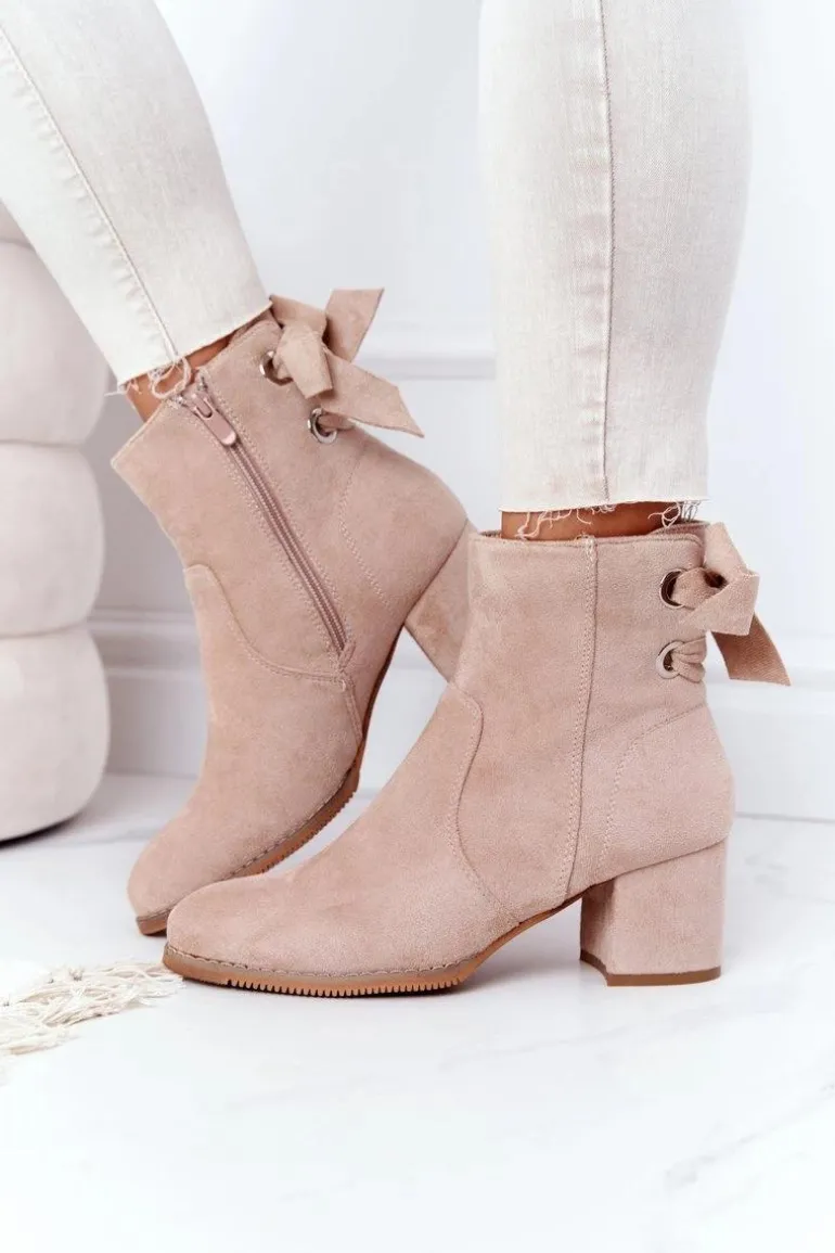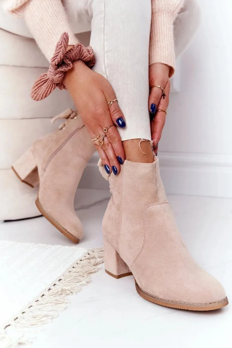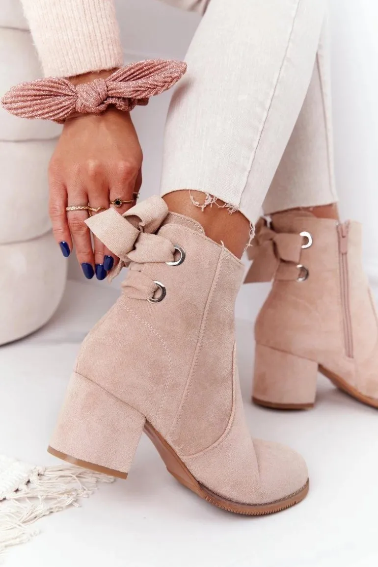 Damskie Ocieplane Botki Na Słupku Beżowe Kayla