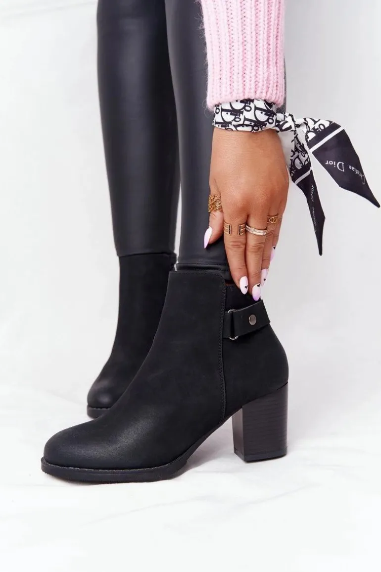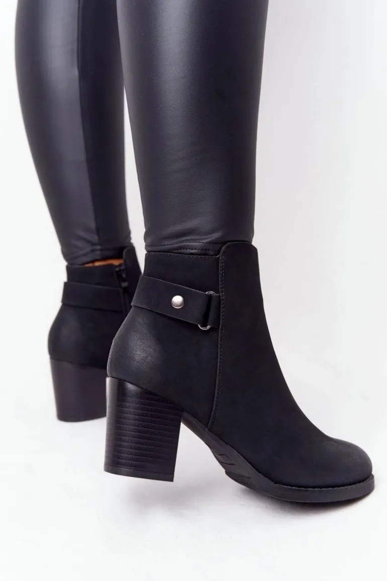 Damskie Ocieplane Botki Na Słupku Nubuk Czarne Unstoppable