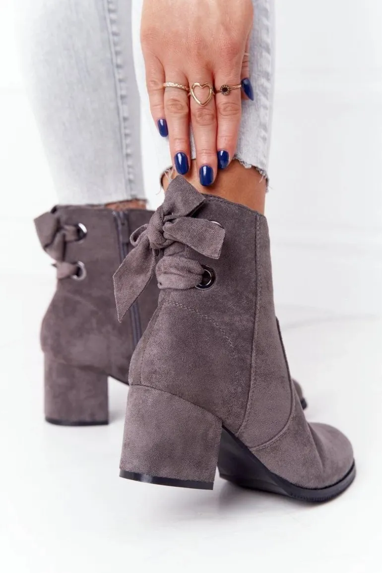 Damskie Ocieplane Botki Na Słupku Szare Kayla
