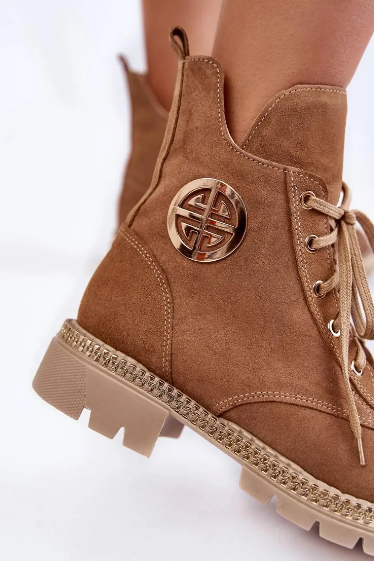 Modne botki damskie zostały wykonane z wysokiej jakości naturalnej skóry. Model ten jest sznurowany, a także zapinany na suwak. Botki posiadają ocieplenie w postaci koca obuwniczego oraz usztywniany zapiętek. Osadzone na płaskim obcasie i platformie ze żłobieniami. Dodatkowo podeszwa została ozdobiona imitacją suwaka i jest antypoślizgowa.Przy wyborze rozmiaru prosimy sugerować się tabelą rozmiarów.
