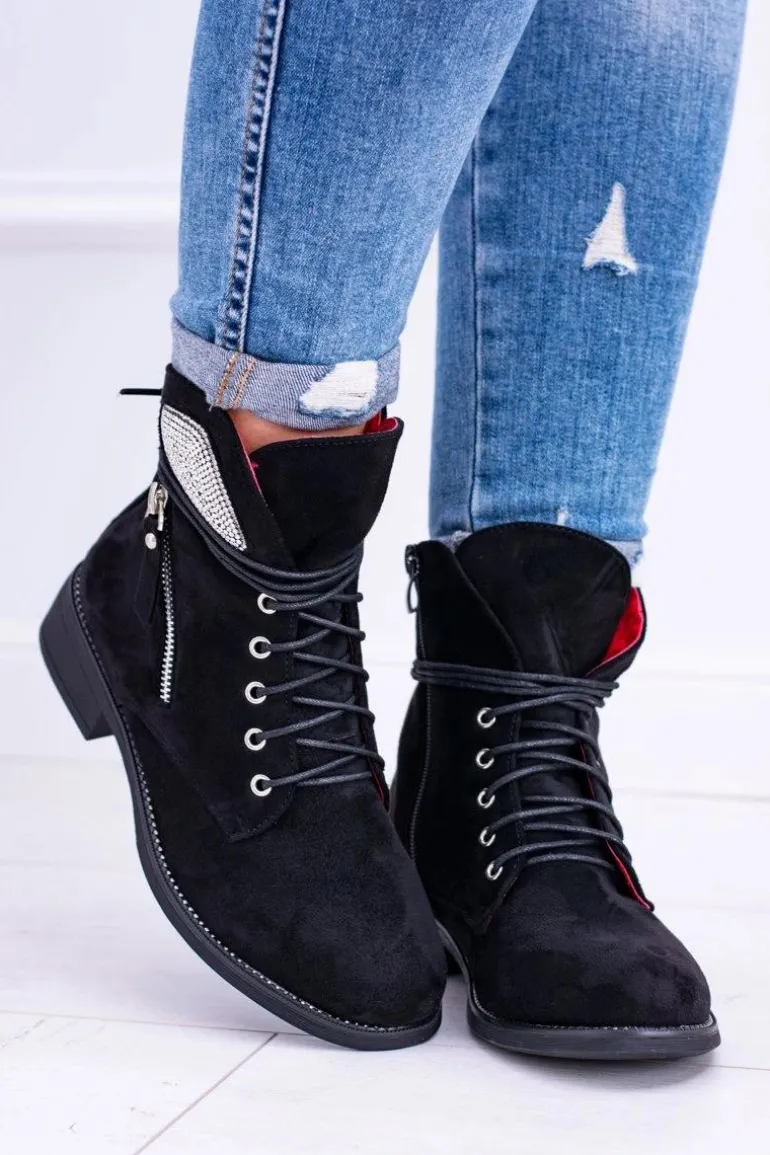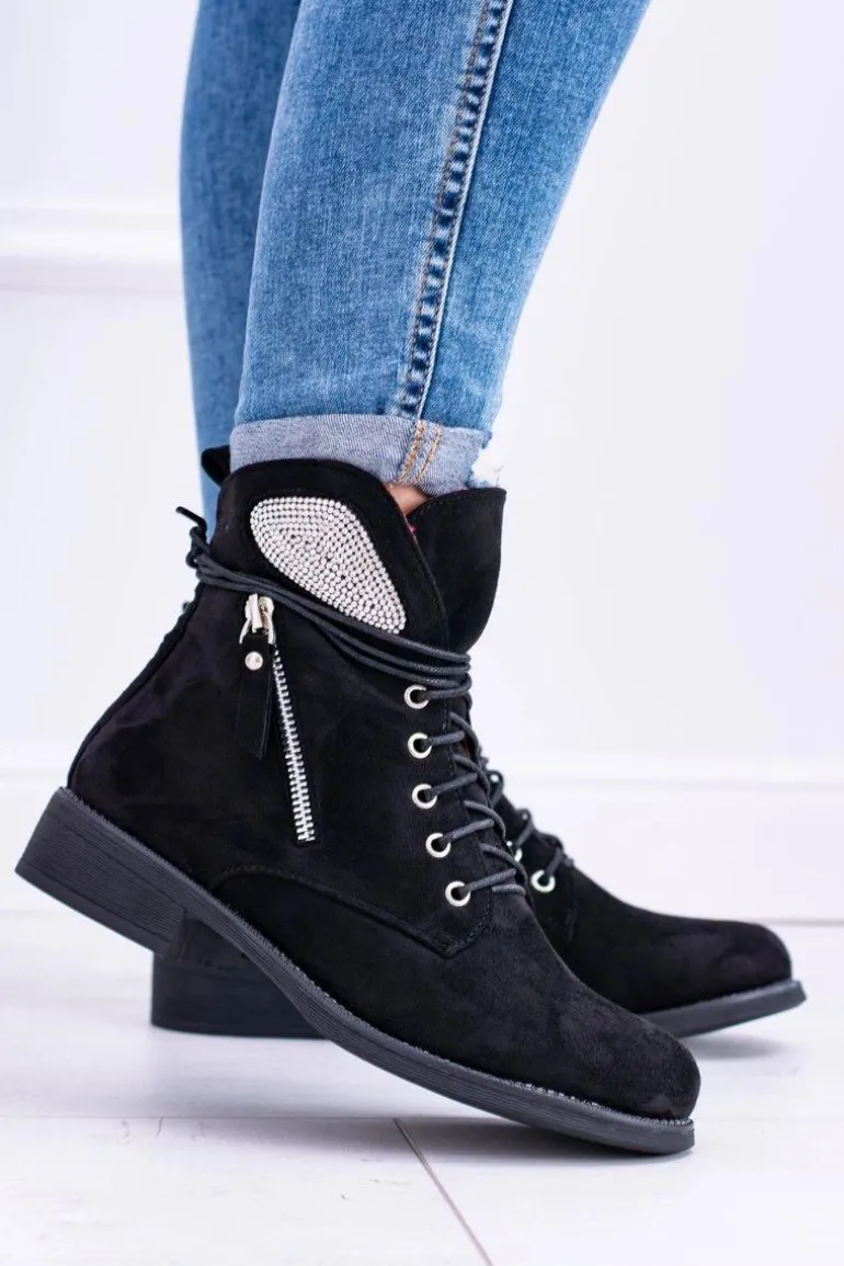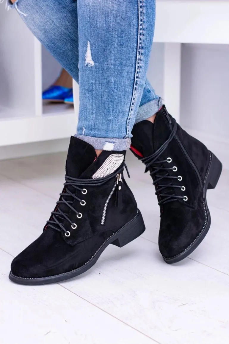 Damskie Ocieplane Botki Na Zamek Cekiny Zamsz Cortina