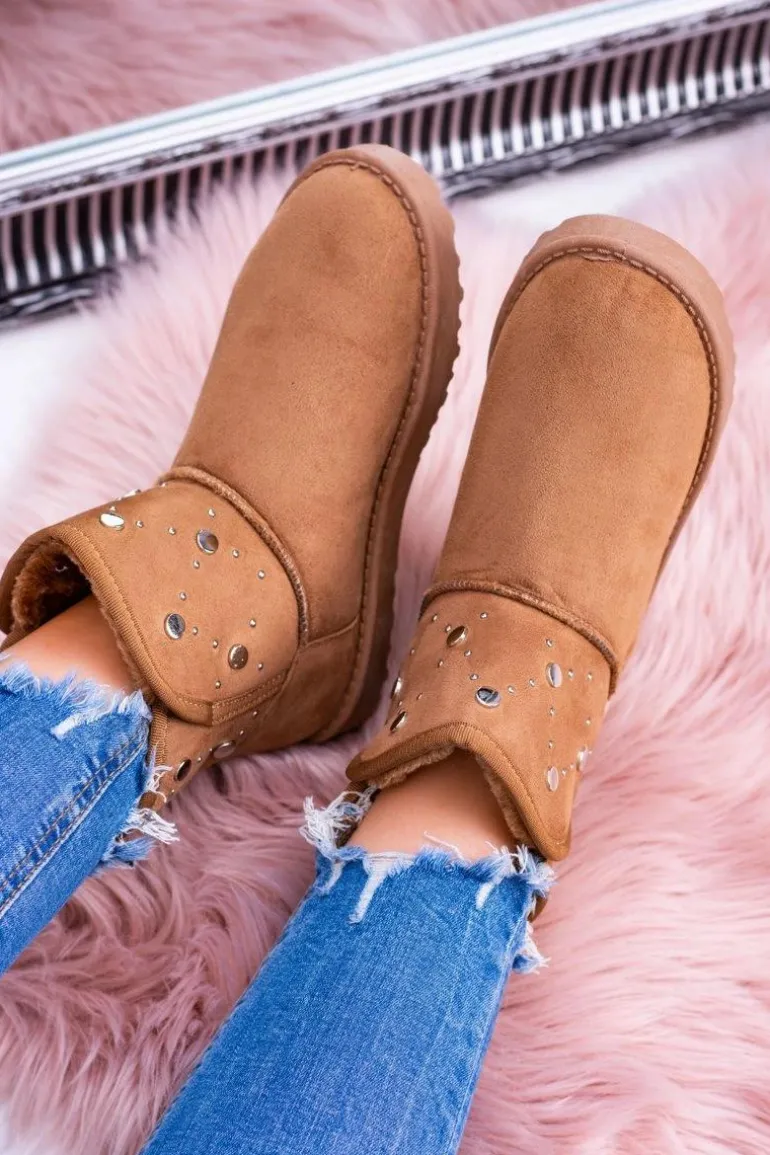 Damskie Ocieplane Botki Śniegowce Zamsz Camel Biggy