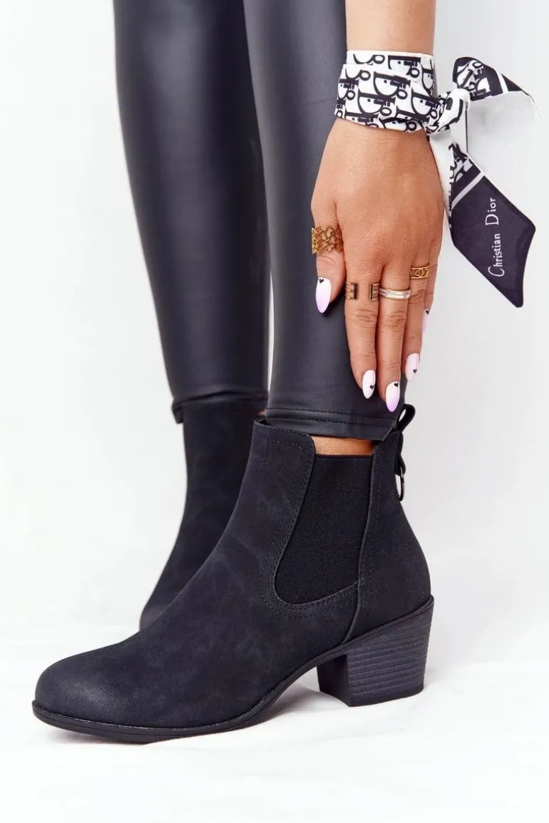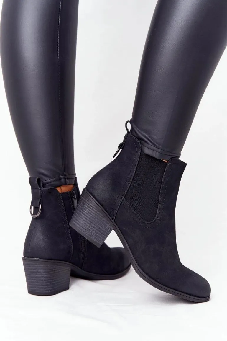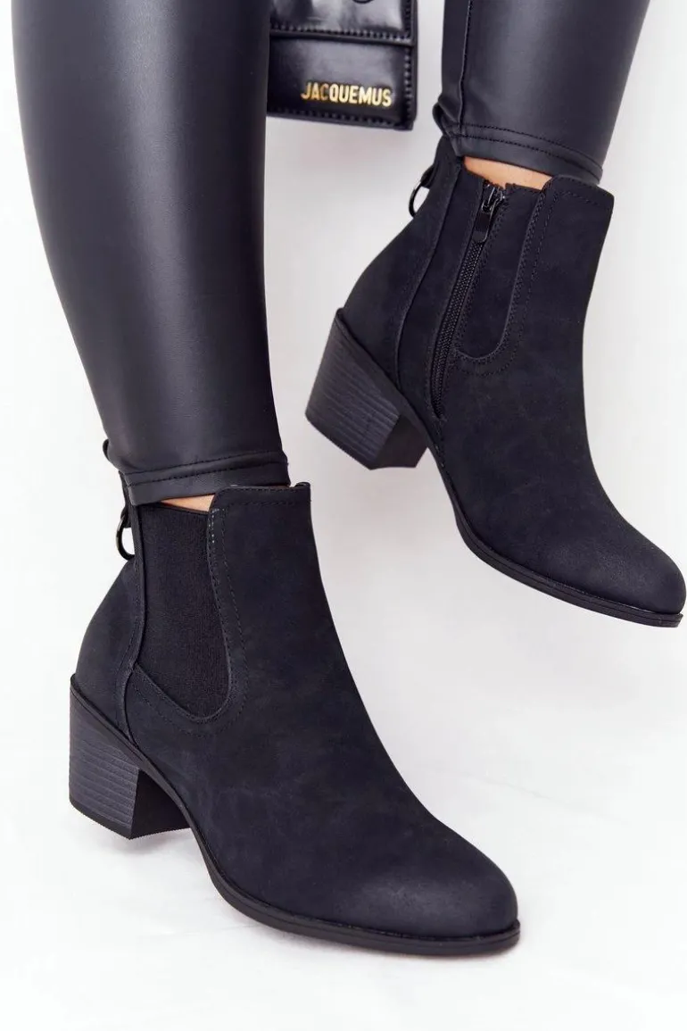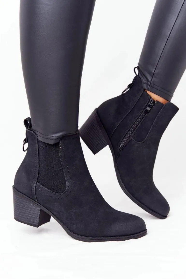 Damskie Ocieplane Botki Sztyblety Na Obcasie Czarne Trinity