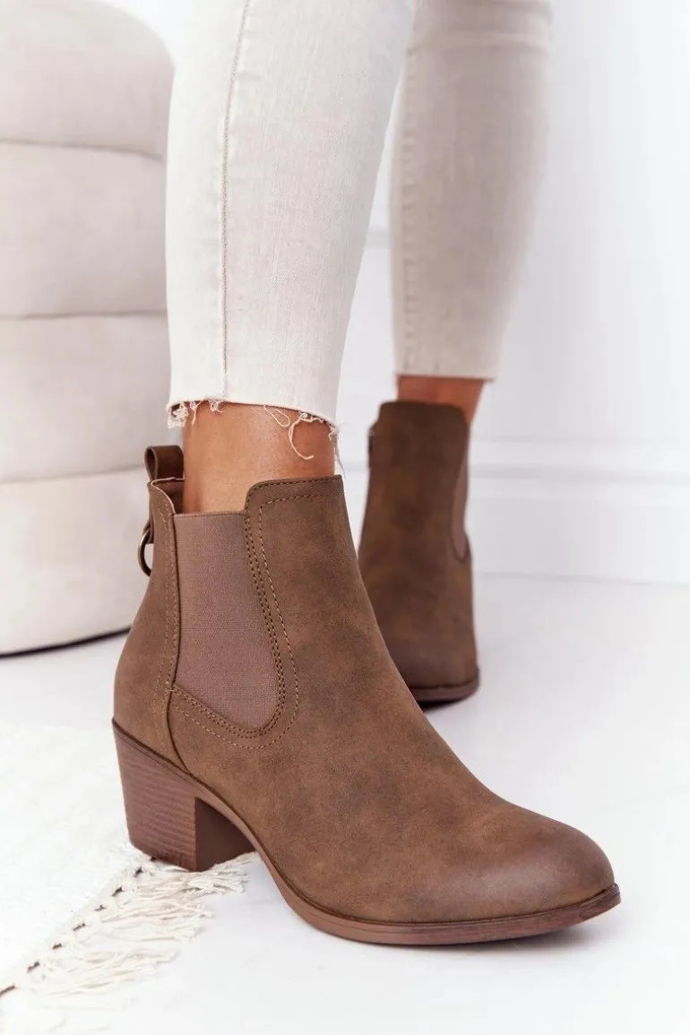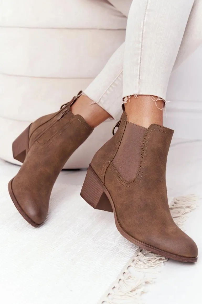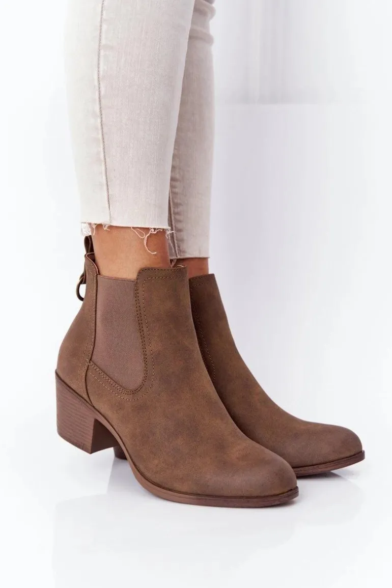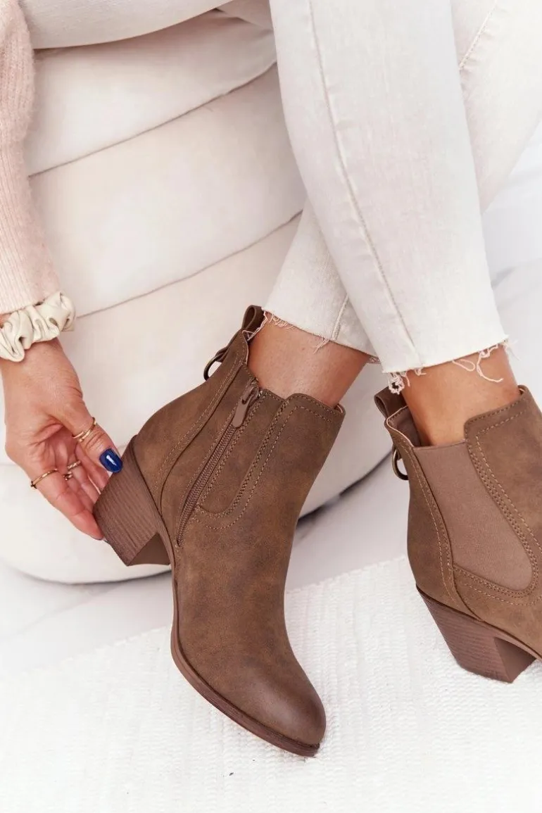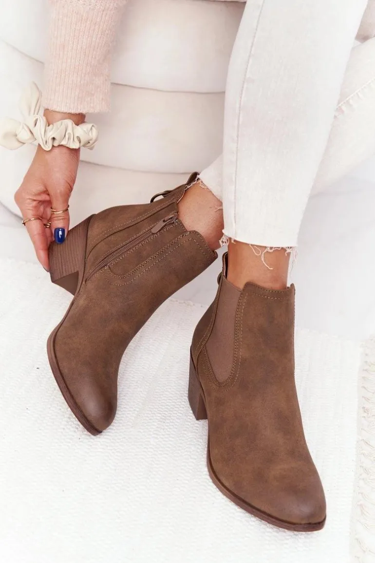Damskie Ocieplane Botki Sztyblety Na Obcasie Khaki Trinity