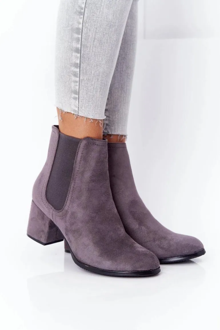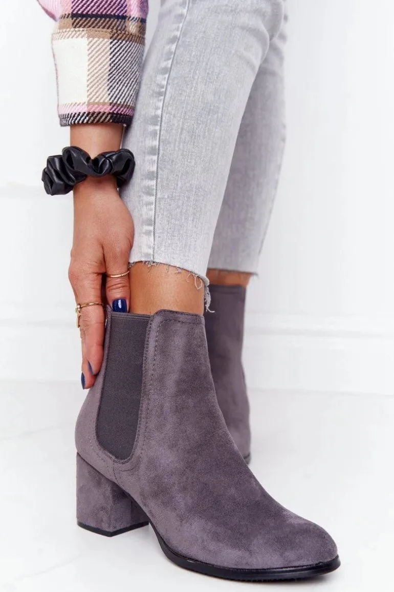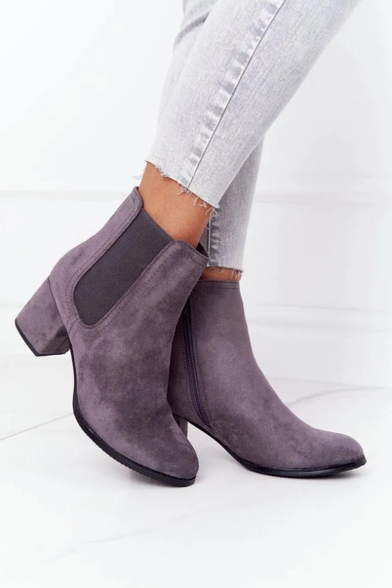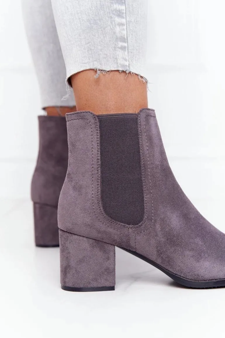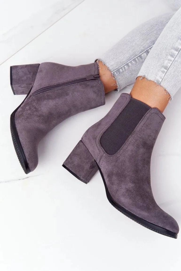 Damskie Ocieplane Botki Sztyblety Na Słupku Szare Juliette