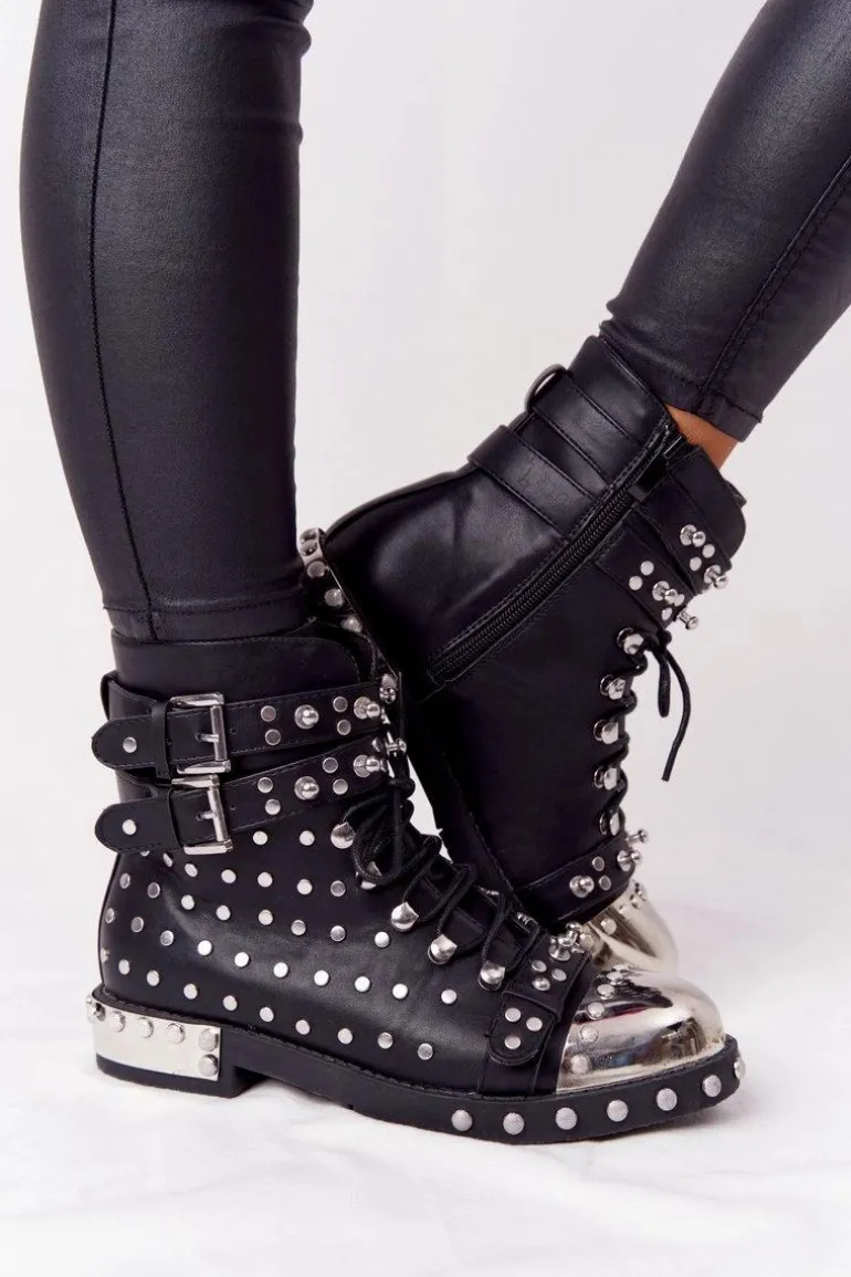 Wyjątkowe botki z dżetami i klamrami. Workery wykonane są ze skóry ekologicznej, posiadają ocieplenie w postaci koca obuwniczego. Botki świetnie wpiszą się w stylizacje glam rock lub grunge. Koniecznie sprawdź całą naszą kolekcje damskich botków! Przy wyborze rozmiaru prosimy sugerować się tabelą rozmiarów.