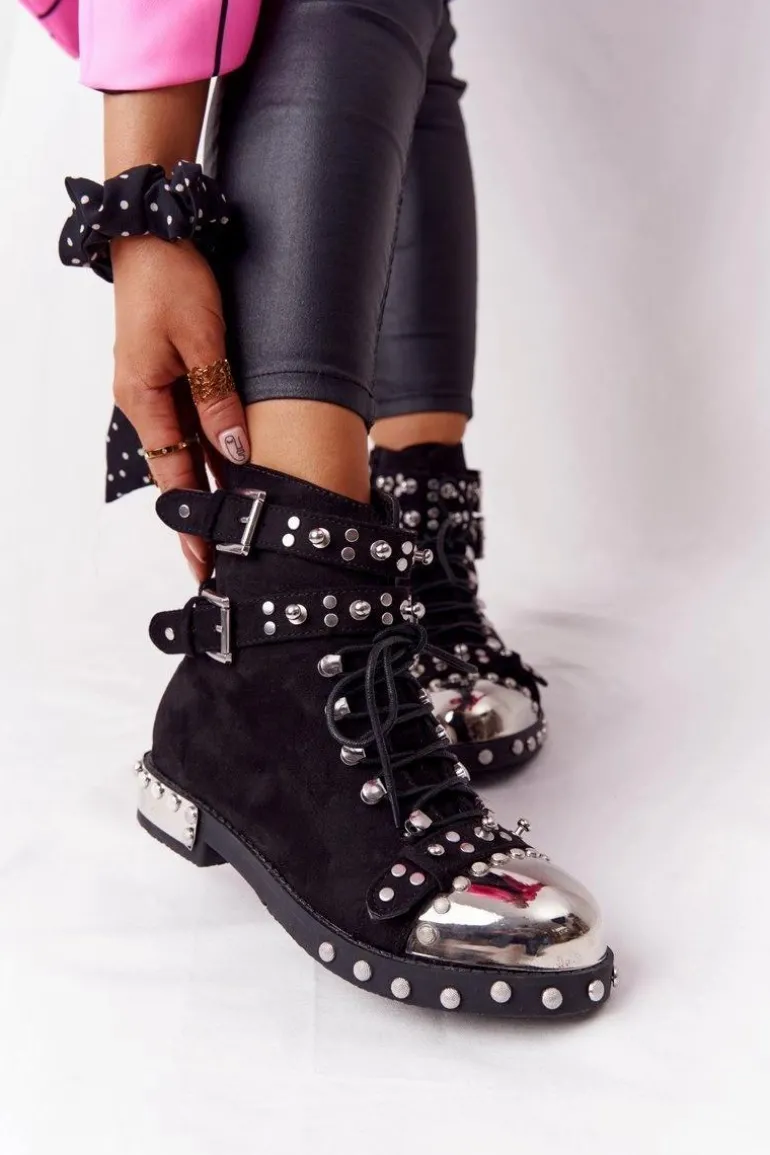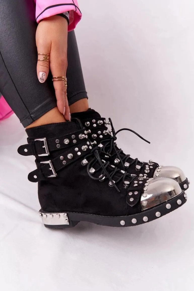 Wyjątkowe botki z dżetami i klamrami. Workery wykonane są z eko zamszu, posiadają ocieplenie w postaci koca obuwniczego. Botki świetnie wpiszą się w stylizacje glam rock lub grunge. Koniecznie sprawdź całą naszą kolekcje damskich botków! Przy wyborze rozmiaru prosimy sugerować się tabelą rozmiarów.