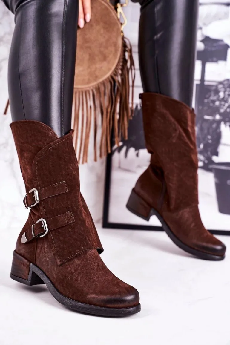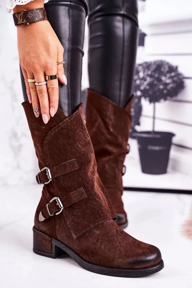 Damskie Ocieplane Botki Z Klamrami Brązowe Cassidy