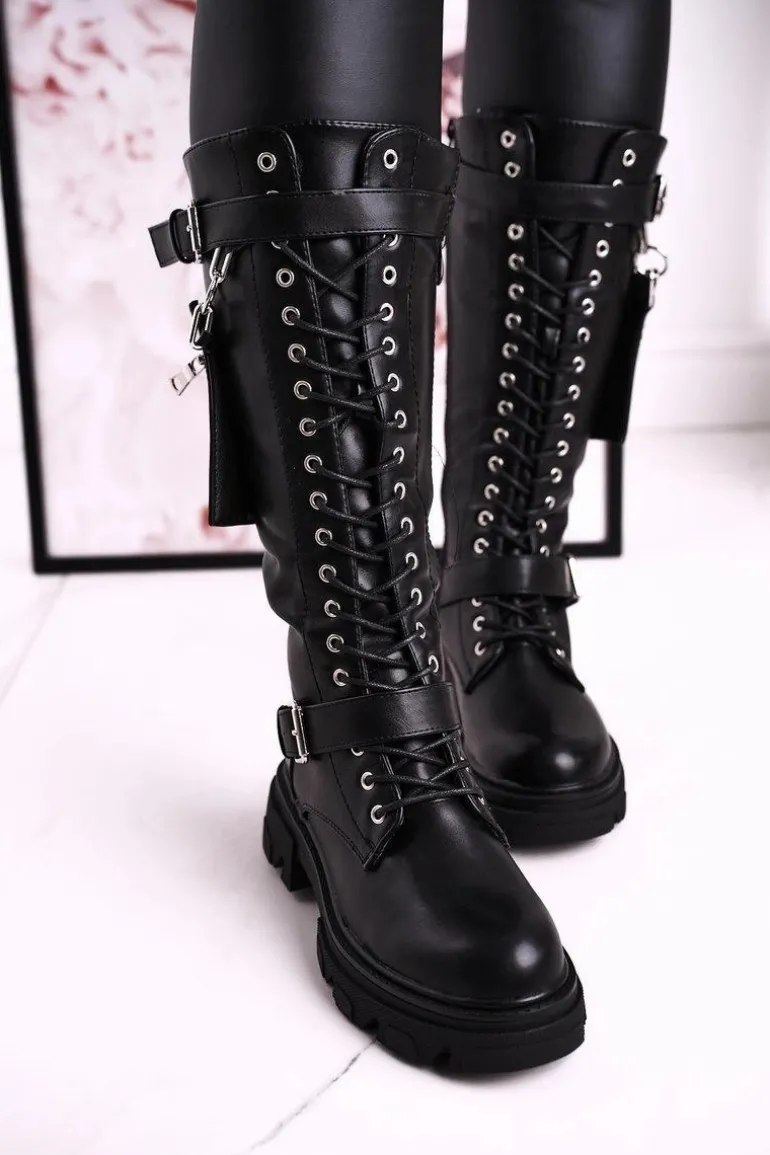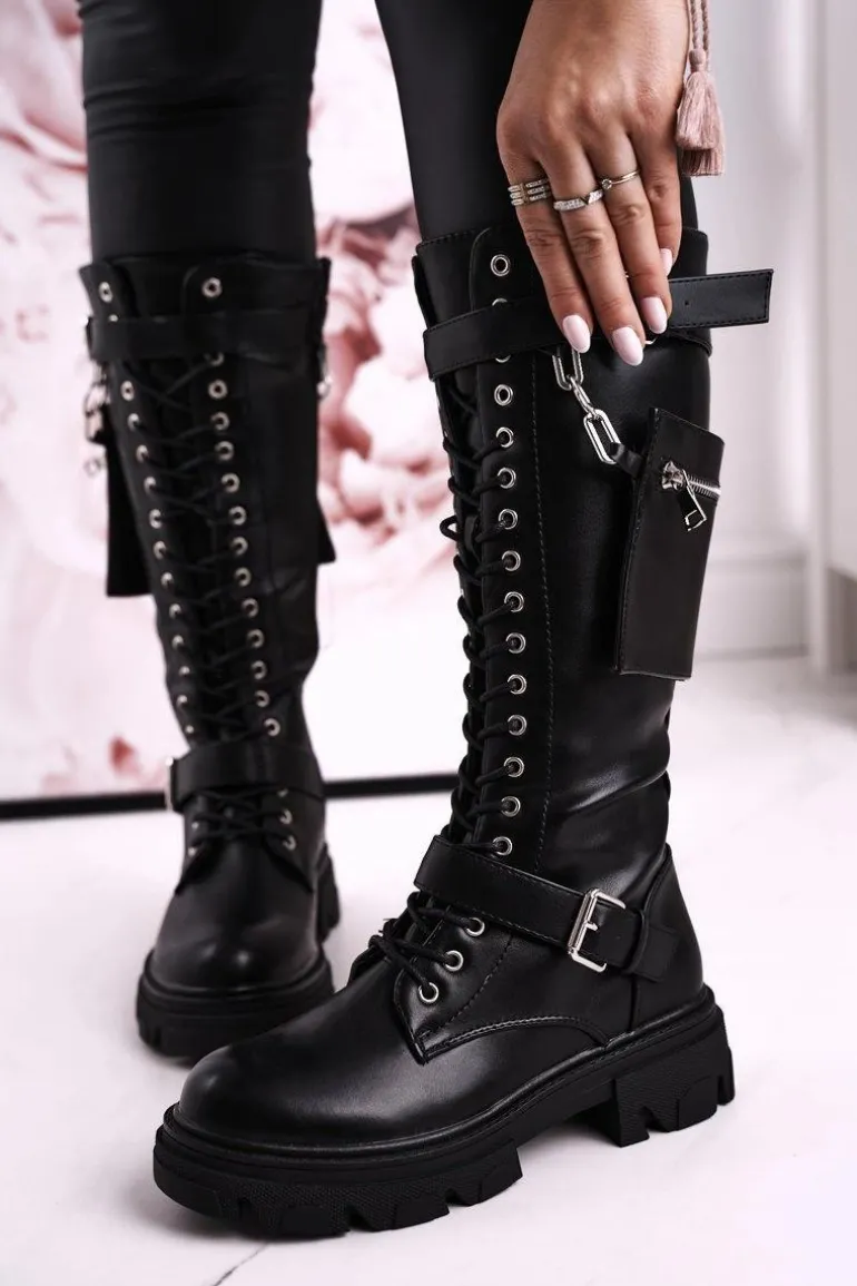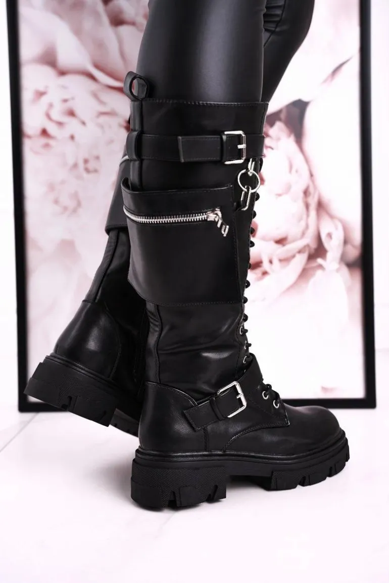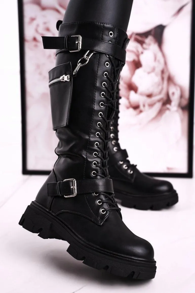 Ocieplane kozaki idealnie sprawdzą się podczas chłodnych dni! Wierzch kozaków wykonany jest z eko skóry, a wnętrze kozaków pokryte jest miękkim w dotyku kocem obuwniczym. Buty ozdobione są modną, odpinaną nerką. Charakteru dodaje masywna podeszwa.
