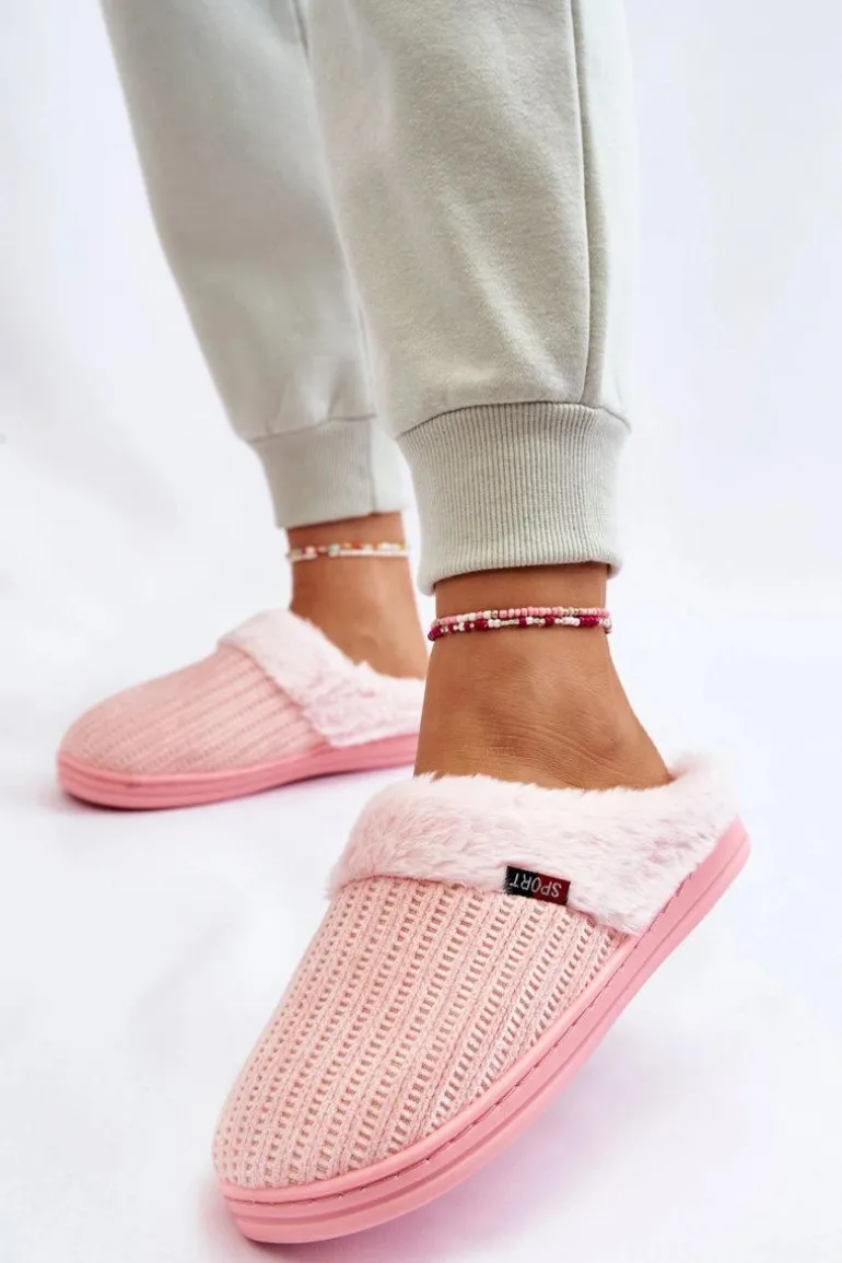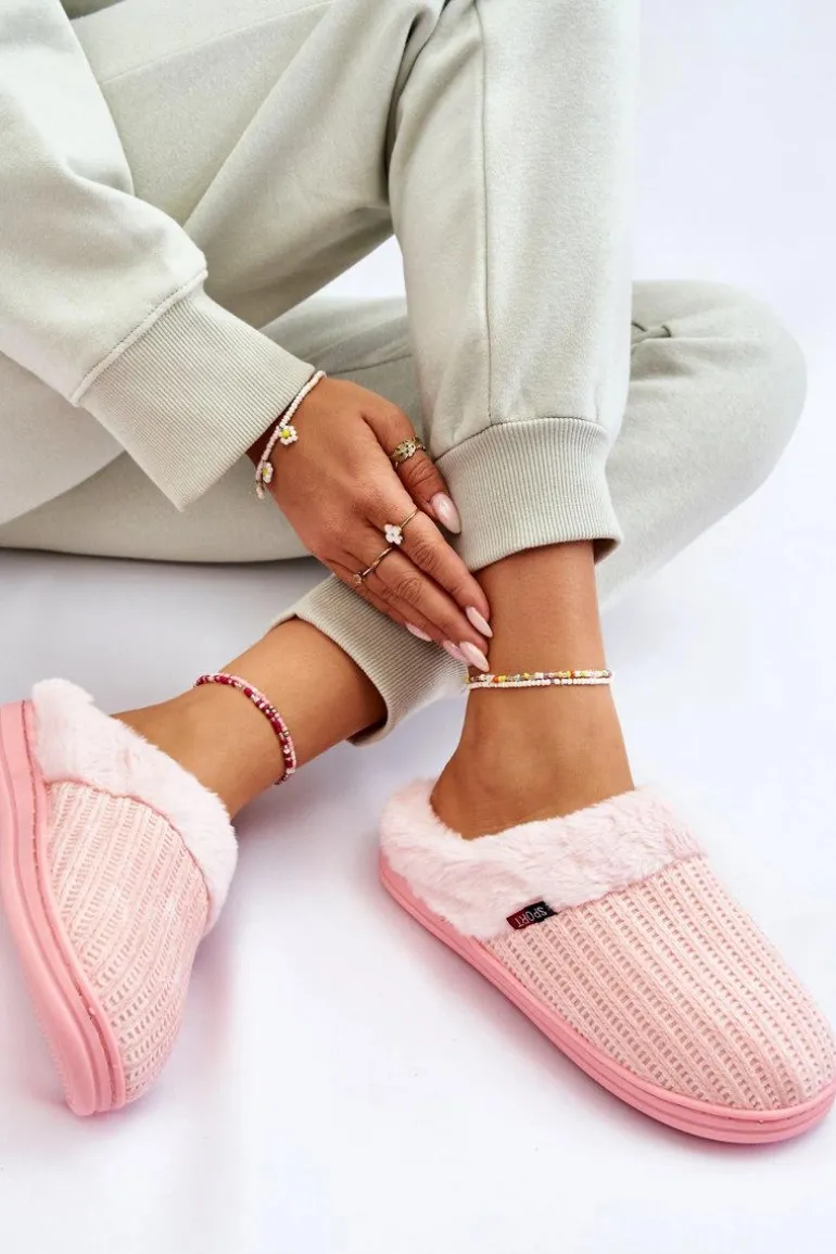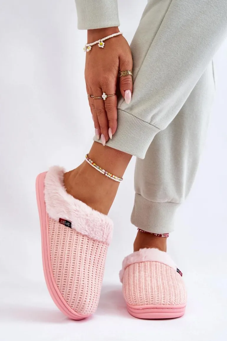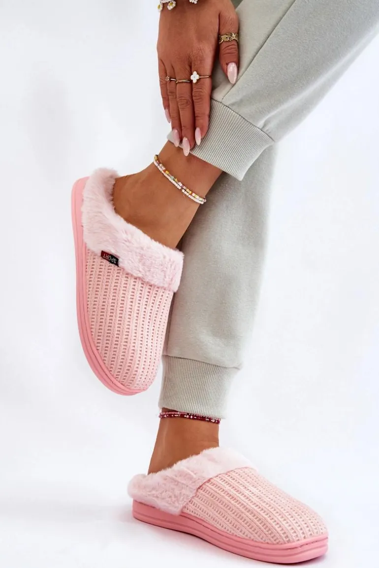 Damskie Ocieplane Papcie Wsuwane Z Futerkiem Różowe Leriss